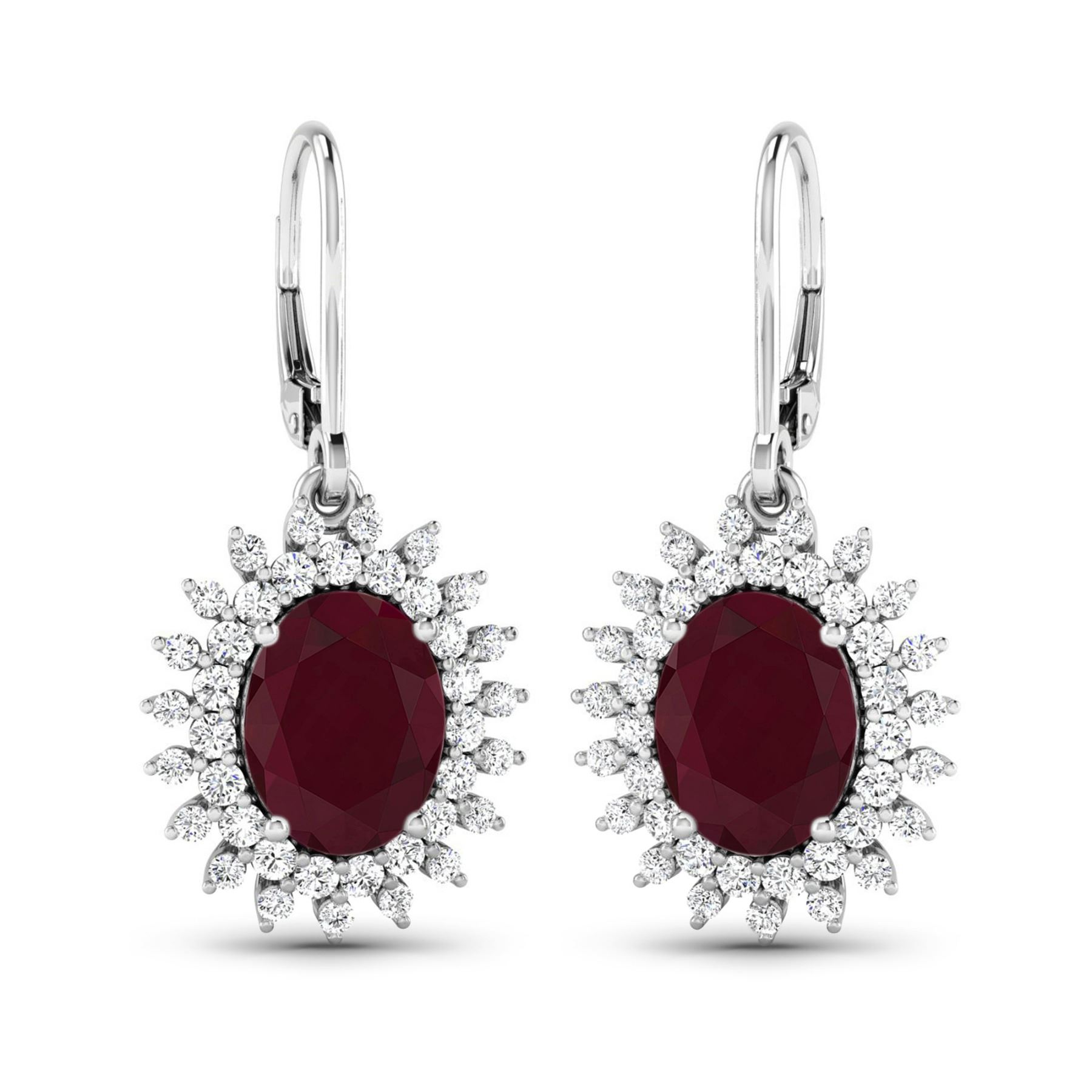 (2) Rubies with a total weight of 4.60cts. Ruby (AA) Oval 9x7mm - 2Pcs + White Diamond F/C Round 1.50mm - 38Pcs + White Diamond F/C Round 1.20mm - 38Pcs ( Diamond Quality : SI-2/HI ) ( Lever Back ). Diamonds with a total weight of 0.84cts. Total weight of these earrings are 4.51 grams.