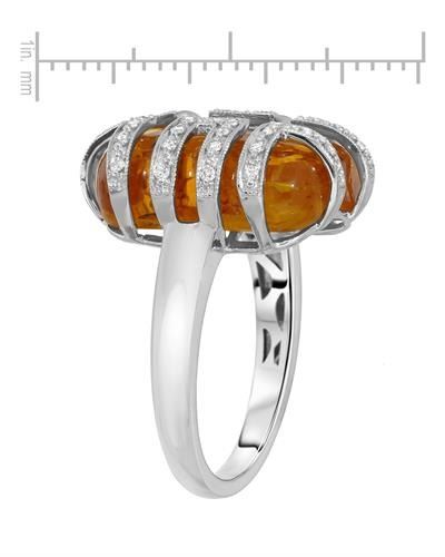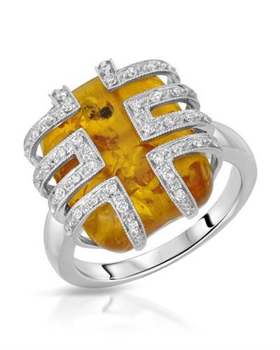 One 14KT White Gold 4.68ct Amber and Diamond Ring. (1) Amber stone with a total weight of 4.68cts. (40) round Diamonds with a total weight of 0.24cts with a color of I and clarity of I-1. Total weight of this ring is 4.5 grams.