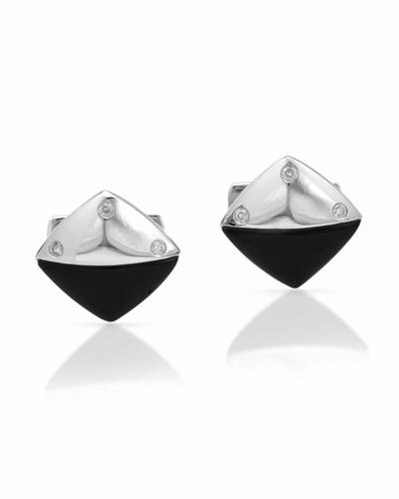 One 14KT White Gold 4.86ctw Onyx and Diamond Cuff links. (2) Onyx stones with a total weight of 4.86cts. (6) Diamonds with a total weight of 0.14cts. Total weight of these cuff links are 8.55 grams.