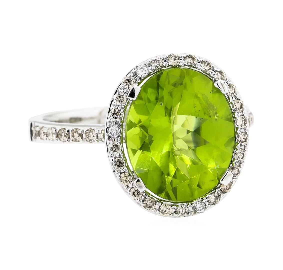 One ring featuring: 14KT white gold weighing 4.0 grams containing one oval peridot weighing 4.90ct and diamonds weighing 0.25ctw. The ring is a size 7.5.