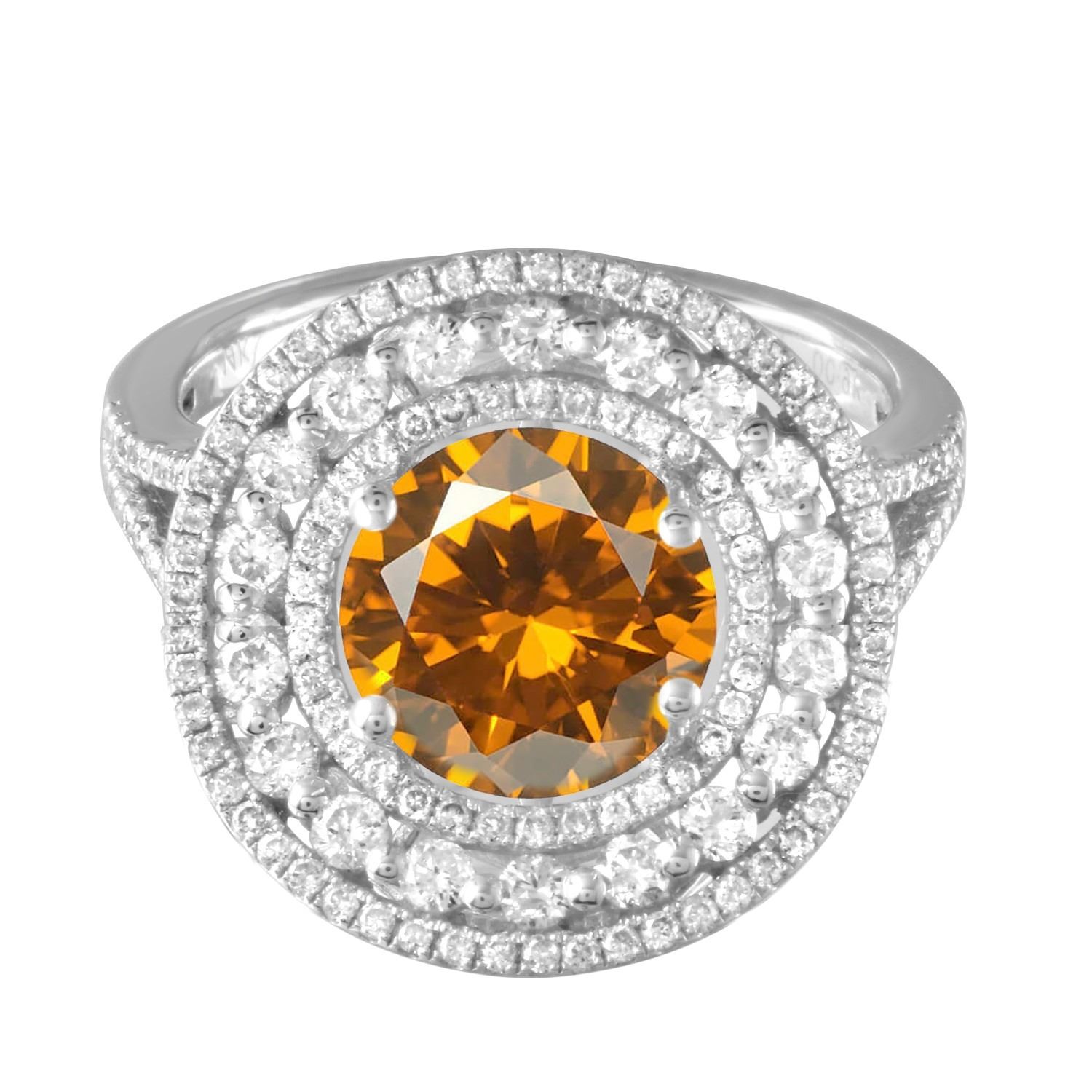 One 14KT White Gold 4.91ct Citrine and Diamond Ring. (1) Citrine stone with a total weight of 4.91cts. (159) Diamonds with a total weight of 1.02cts with a color of H-I and a clarity of SI-2. Total weight of this ring is 4.9 grams. Ring size is 6.5.