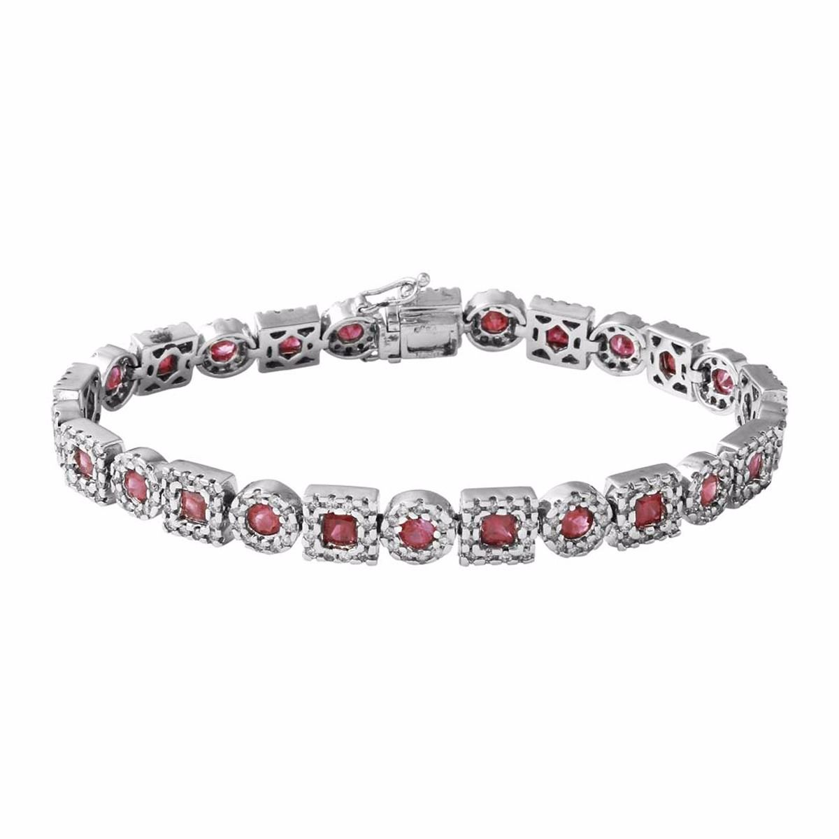 One 14KT White Gold 4.96ctw Ruby and Diamond Bracelet. (26) Ruby with a total weight of 4.96cts. (299) Diamonds with a total weight of 2.24cts. Length is 7 inches. The total weight of this bracelet is 20.59 grams.