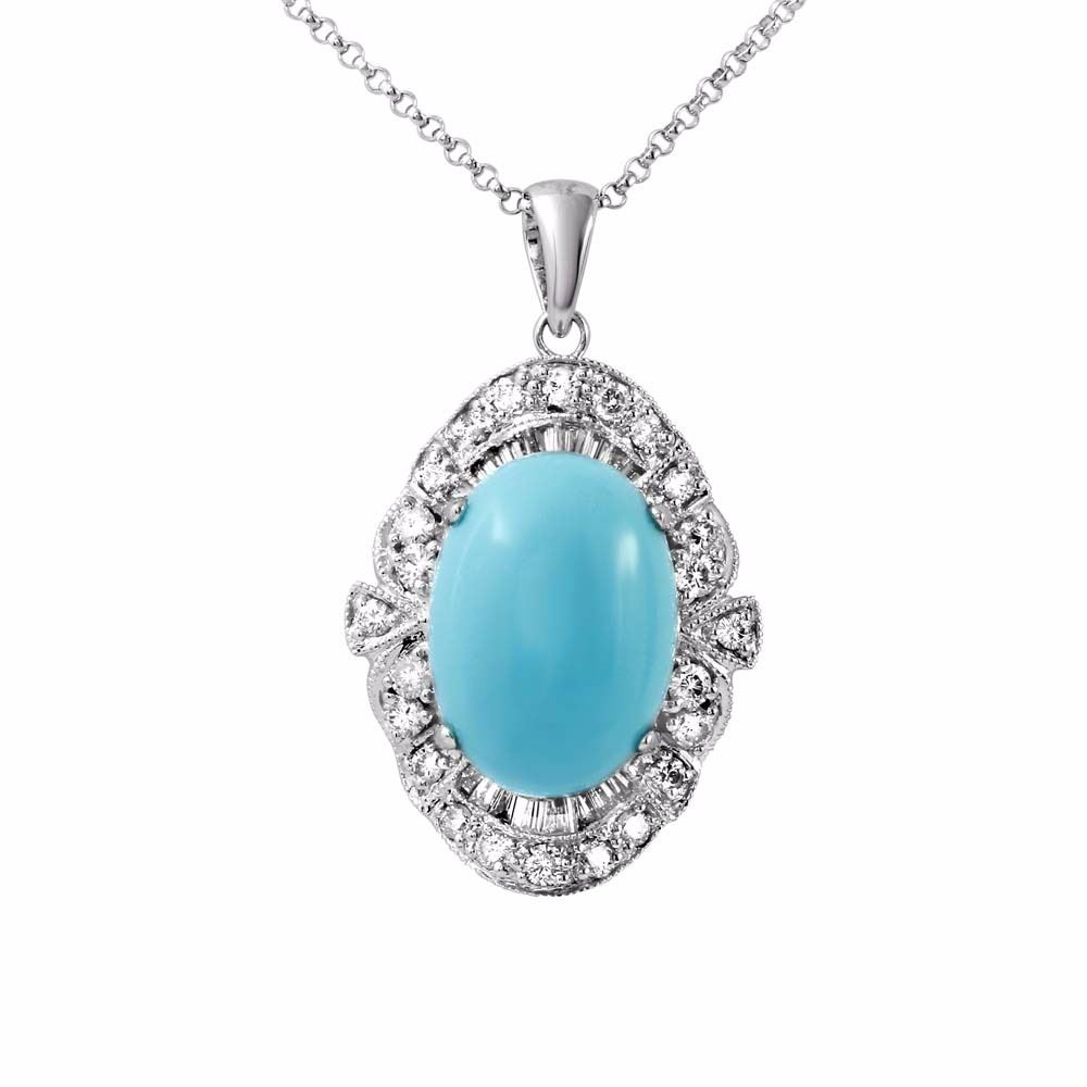 14KT White Gold 4.99ct Turquoise and Diamond Pendant with Chain