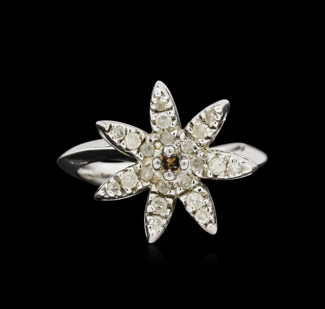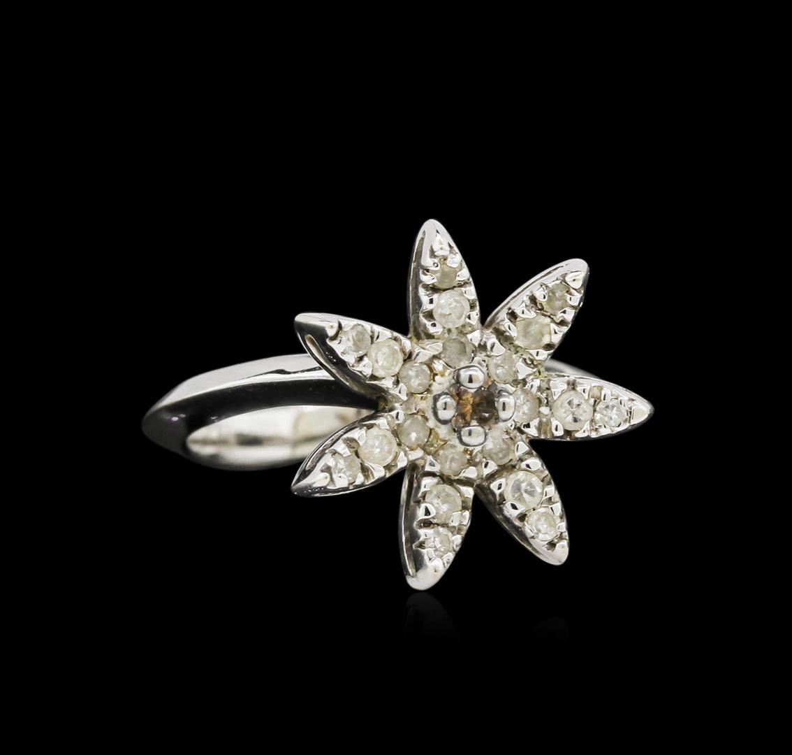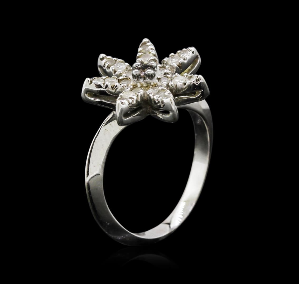 One 14KT white gold diamond starfish ring. Features approximately one pink tourmaline and 21 diamonds weighing a total of about 0.42cts. Total weight of ring is approximately 3.90gms.