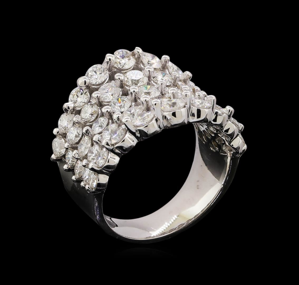 One electronically tested 14KT white gold ladies cast diamond ring with a bright polish finish. Identified with markings of "14K". Condition is new. Containing: Forty-Five prong set round brilliant cut diamonds, measuring 3.50 - 2.80 x 1.89mm (depth est.) approximate total weight of 45 Stones = 5.15ct. Clarity: SI-2 to I-1. Color: K - L. All diamonds are graded in the mounting, unless otherwise stated. Total Weight of Diamonds 5.15ct. Total Weight of Ring 11.40 grams. GGL Appraised at $10,430.00.