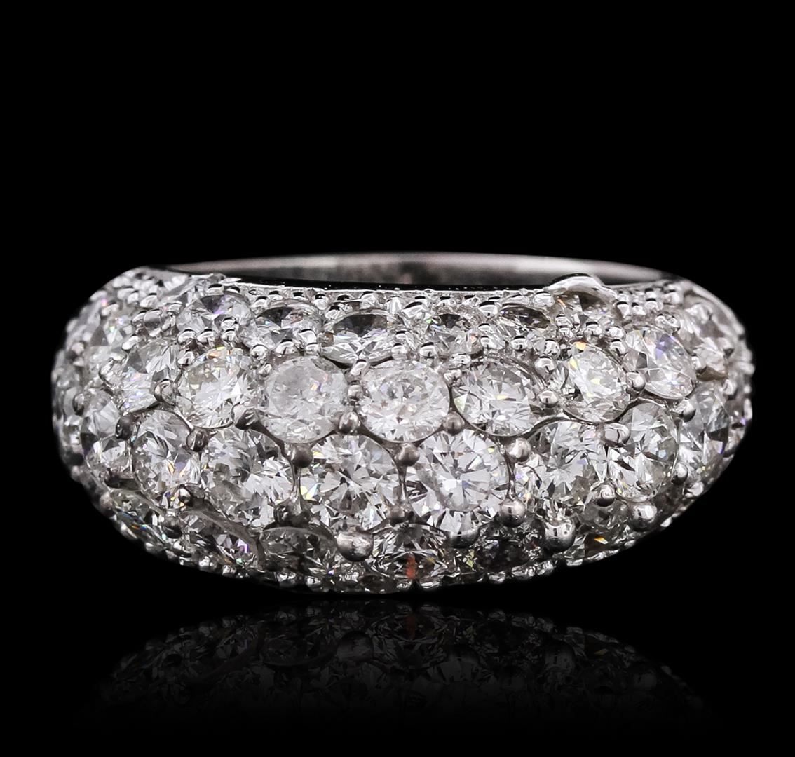 One electronically tested 14KT white gold ladies combination cast & assembled ring with a bright polish finish. Identified with markings of "K14". Condition is new. Containing: Forty-Nine prong set round brilliant cut diamonds, measuring 3.40 - 2.80 x 1.86mm (depth est.) approximate total weight of 49 Stones = 5.34ct. Clarity: SI-1 to I-1. Color: I - J, Cut is Good. All diamonds are graded in the mounting, unless otherwise stated. Total Weight of Diamonds 5.34ct. Total Weight of Ring 8.50 grams. GGL Appraised at $15,370.00.