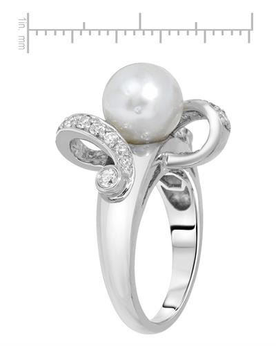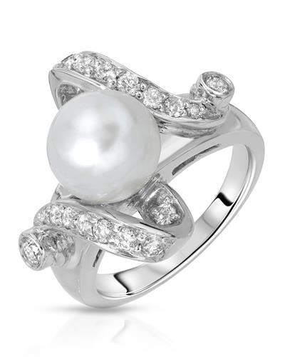 One 14KT White Gold 5.35ct Pearl and Diamond Ring. (1) Pearl with a total weight of 5.35cts. (18) round Diamonds with a total weight of 0.53cts with a color of I and clarity of I-1. Total weight of this ring is 7.68 grams.