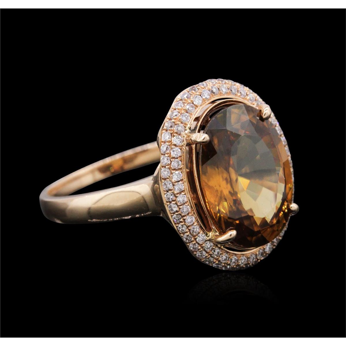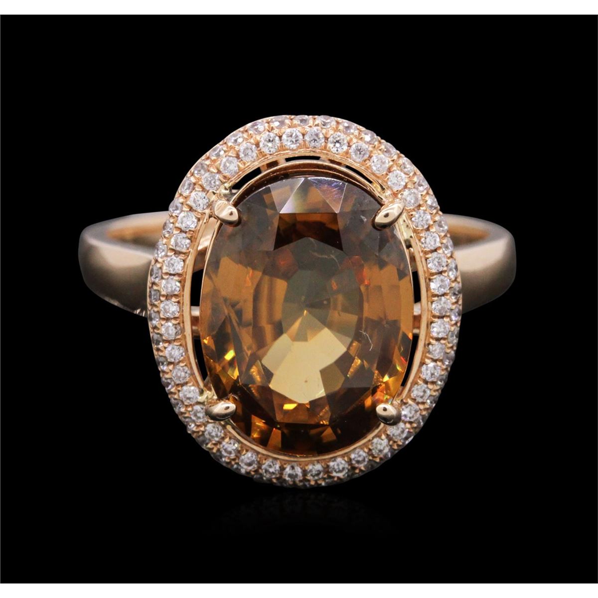One ring featuring: 14KT white gold weighing 4.40 grams containing one orange/brown zircon center stone with a total weight of 5.82ct and diamonds with a total weight of 0.33cts.