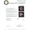 One electronically tested 14KT white gold ladies cast ruby and diamond ring with a bright polish finish. Identified with markings of "14K". Condition is new. Containing: One prong set pear modified brilliant cut natural ruby, measuring 15.00. x 10.00. x 4.90mm, approximate weight of 5.88ct., clarity is heavily included, type II, medium dark, moderately strong, strongly purplish red color, (GIA stpR 6/4), cut is good. Twenty-One prong set round brilliant cut diamonds, measuring 1.90 - 1.90 x 1.14mm (depth est.) approximate total weight of 21 Stones = 0.53ct. Clarity: SI-1 to SI-2. Color: I - J. All diamonds and colored gemstones are graded in the mounting, unless otherwise stated. Colored gemstones are presumed to have been subjected to commonly used enhancement processes. Total Weight of Colored Stones 5.88ct. Total Weight of Diamonds 0.53ct. Total Weight of Ring 6.80 grams. GGL Appraised at $4,460.00.
