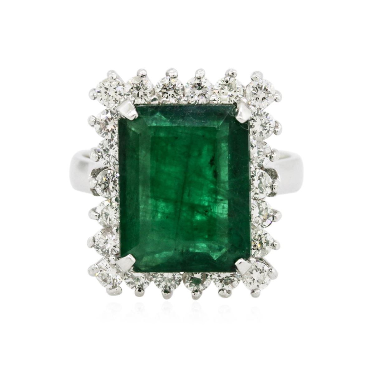 One electronically tested 14KT white gold ladies combination cast & assembled ring with a bright polish finish. Identified with markings of "K14". Condition is new. Containing: One prong set emerald standard step cut natural emerald, measuring 13.28 x 10.45 x 6.00mm, approximate weight of 6.12ct., clarity is heavily included, type III, medium dark, moderately strong, green color, (GIA G 6/4), cut is good. Twenty-Four prong set round brilliant cut diamonds, measuring 1.80 - 1.70 x 1.05mm (depth est.) approximate total weight of 24 Stones = 0.47ct. Clarity: I-1 to I-2. Color: I - J, Cut is Good. Colored gemstones are presumed to have been subjected to commonly used enhancement processes. All diamonds and colored gemstones are graded in the mounting, unless otherwise stated. Total Weight of Colored Stones 6.12ct. Total Weight of Diamonds 0.47ct. Total Weight of Ring 6.90 grams. GGL Appraised at $13,030.00.