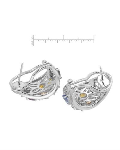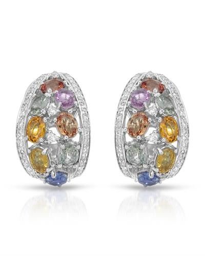 14KT White Gold 6.57ctw Multi Color Sapphire and Diamond Earrings. (16) Multi color sapphires with a total weight of 6.57cts. (100) Round Diamonds with a total weight of 0.85cts with a color of I and clarity of I-1. Total weight of these earrings are 9.91 grams.