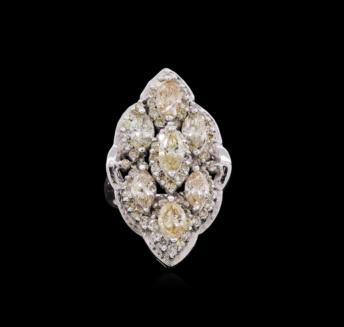 New Condition! One suite electronically tested 14KT white gold Ladies combination cast & assembled fashion ring and earrings with screw backs with a bright polish finish. Identified with markings of "14K". Condition is excellent. Containing: Eighty-Five prong set round brilliant cut diamonds, measuring 1.50 - 1.50 x 0.90mm (depth est.) approximate total weight of 85 Stones = 1.04ct. Clarity of SI-1 to I-1, Color of J - N. Nine prong set marquise shaped cut diamonds, measuring 8.57 x 4.52 x 2.89mm (depth est.) approximate total weight of 9 Stones = 5.78ct. Clarity of I-1 to I-1, Color of N - P. Total Weight of Diamonds 6.82 ct. Total Weight of Ring 13.50 gm. GGL Appraised at $33,125.00.