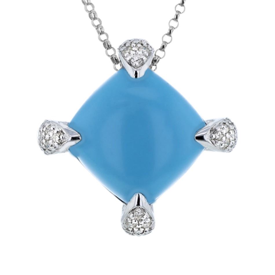 14KT White Gold 7.41ct Turquoise and Diamond Pendant with Chain