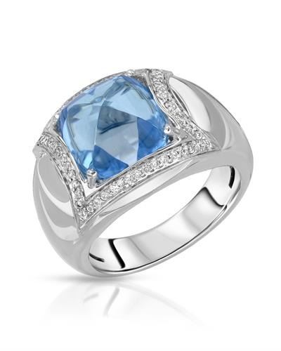 14KT White Gold 7.84ct Blue Topaz and Diamond Ring. (1) Blue Topaz stone with a total weight of 7.84cts. (54) round Diamonds with a total weight of 0.23cts with a color of I and clarity of I-1. Total weight of this ring is 9.63 grams.