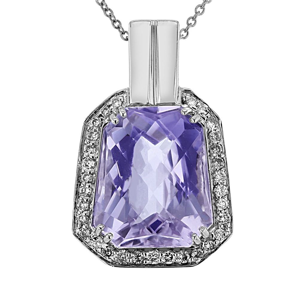 14KT White Gold 8.00ct Amethyst and Diamond Pendant with Chain