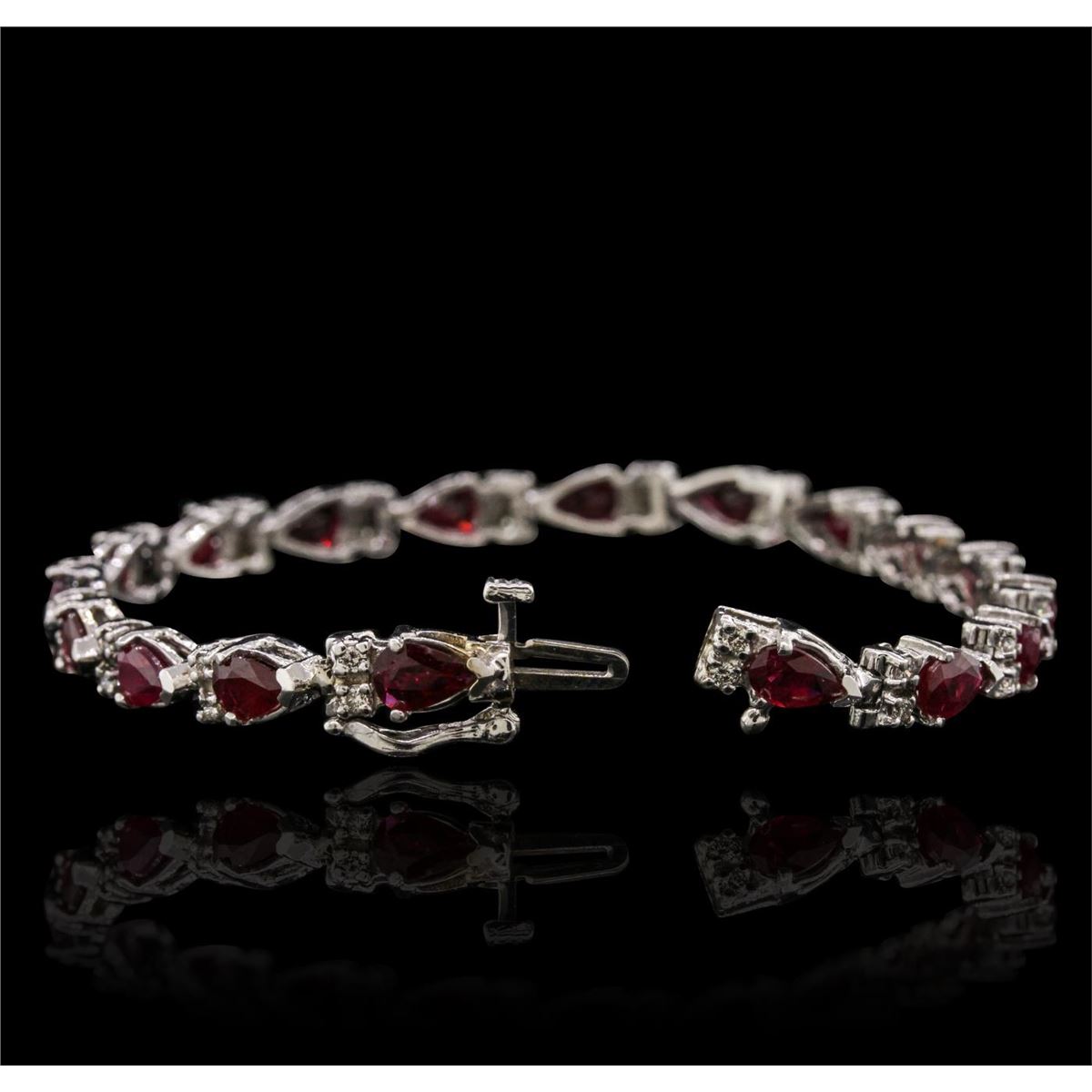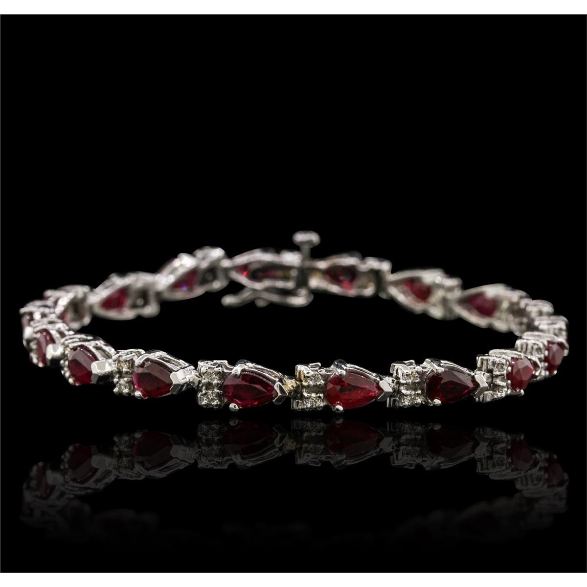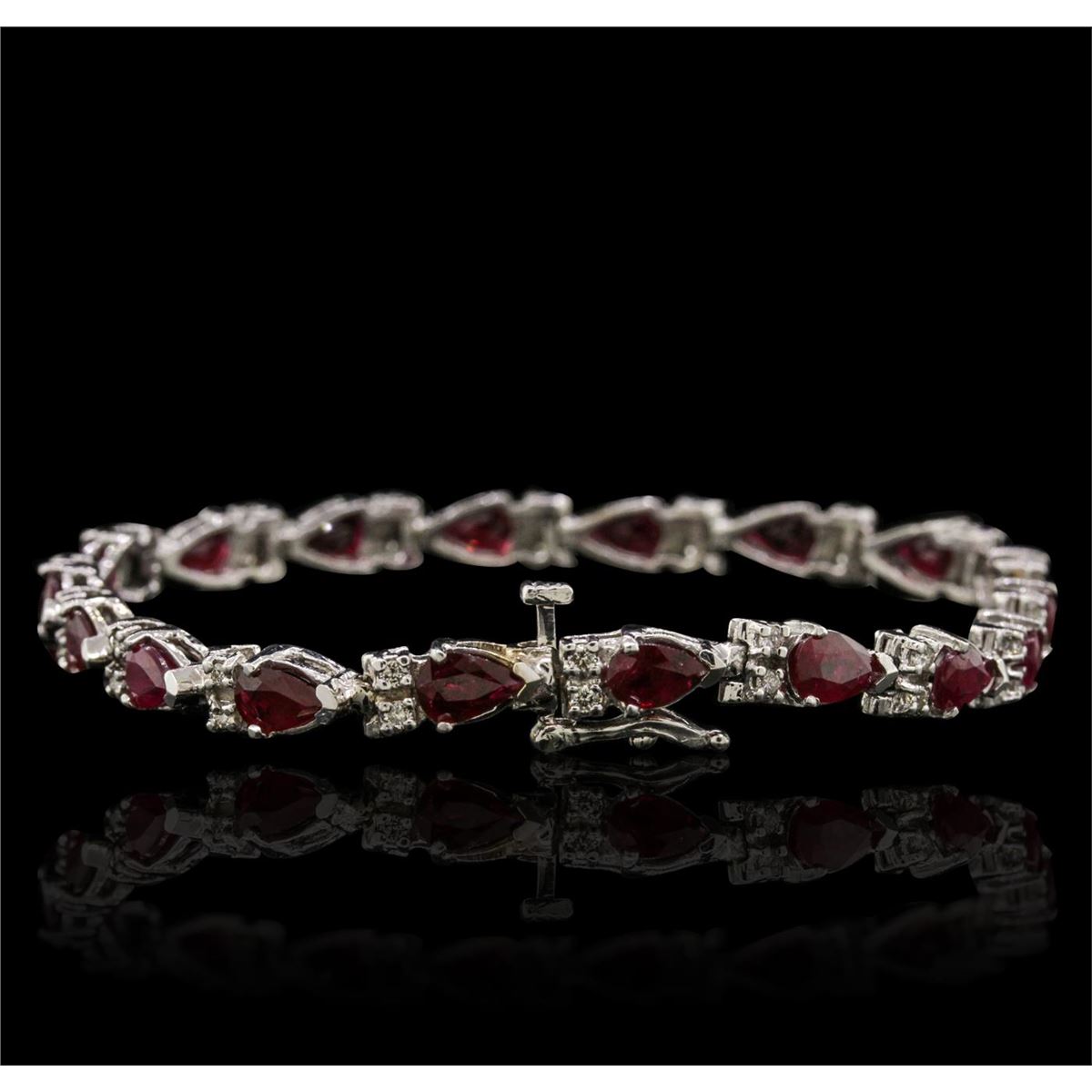 One bracelet featuring: 14KT white gold with a total weight of 13.70 grams, ruby with a total weight of 8.32ctw, and diamonds with a total weight of 0.55ctw.