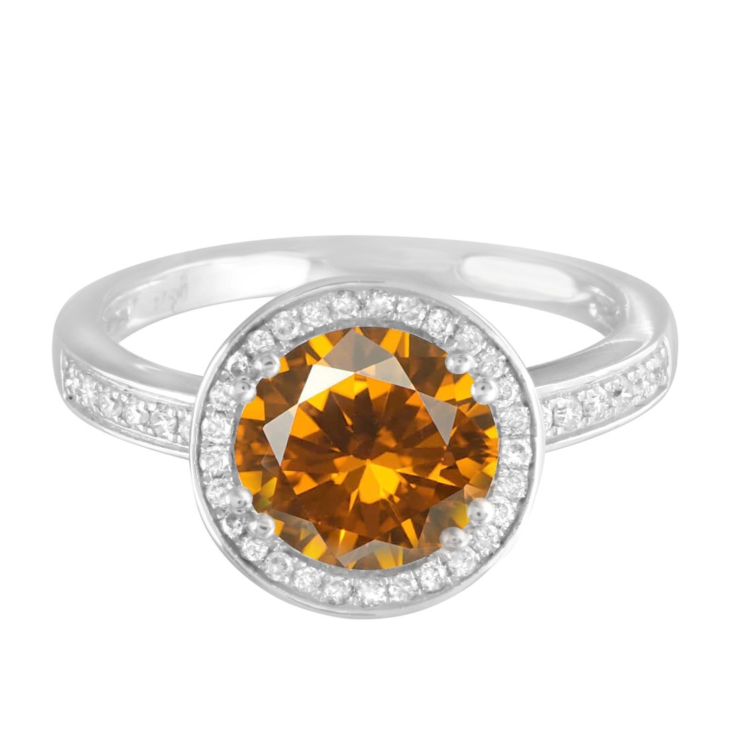One 14KT White Gold 8.51ct Citrine and Diamond Ring. (1) Citrine stone with a total weight of 8.51cts. (56) Diamonds with a total weight of 0.31cts with a color of H-I and a clarity of SI-2. Total weight of this ring is 4.6 grams. Ring size is 6.5.