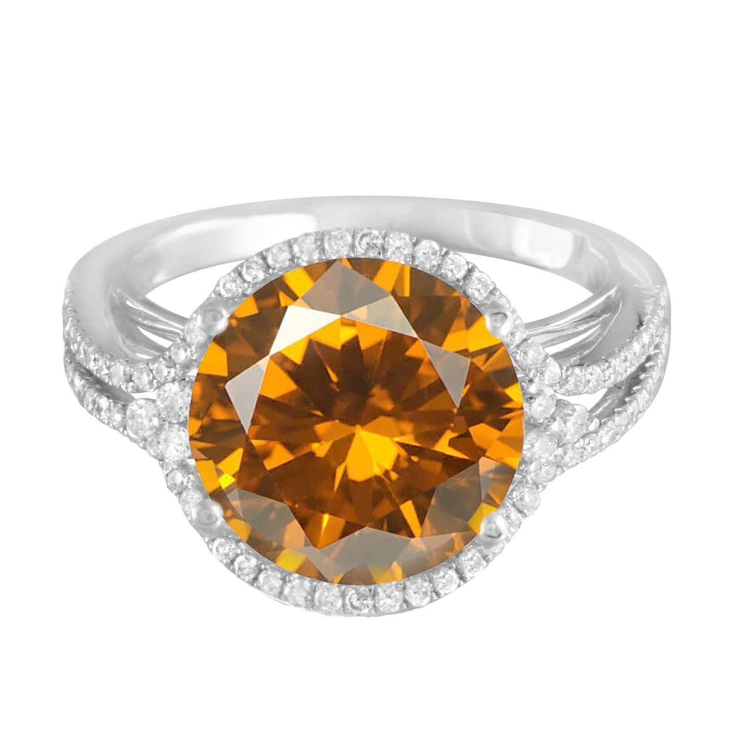One 14KT White Gold 8.51ct Citrine and Diamond Ring. (1) Citrine stone with a total weight of 8.51cts. (90) Diamonds with a total weight of 0.46cts with a color of H-I and a clarity of SI-2. Total weight of this ring is 4.28 grams. Ring size is 6.5.