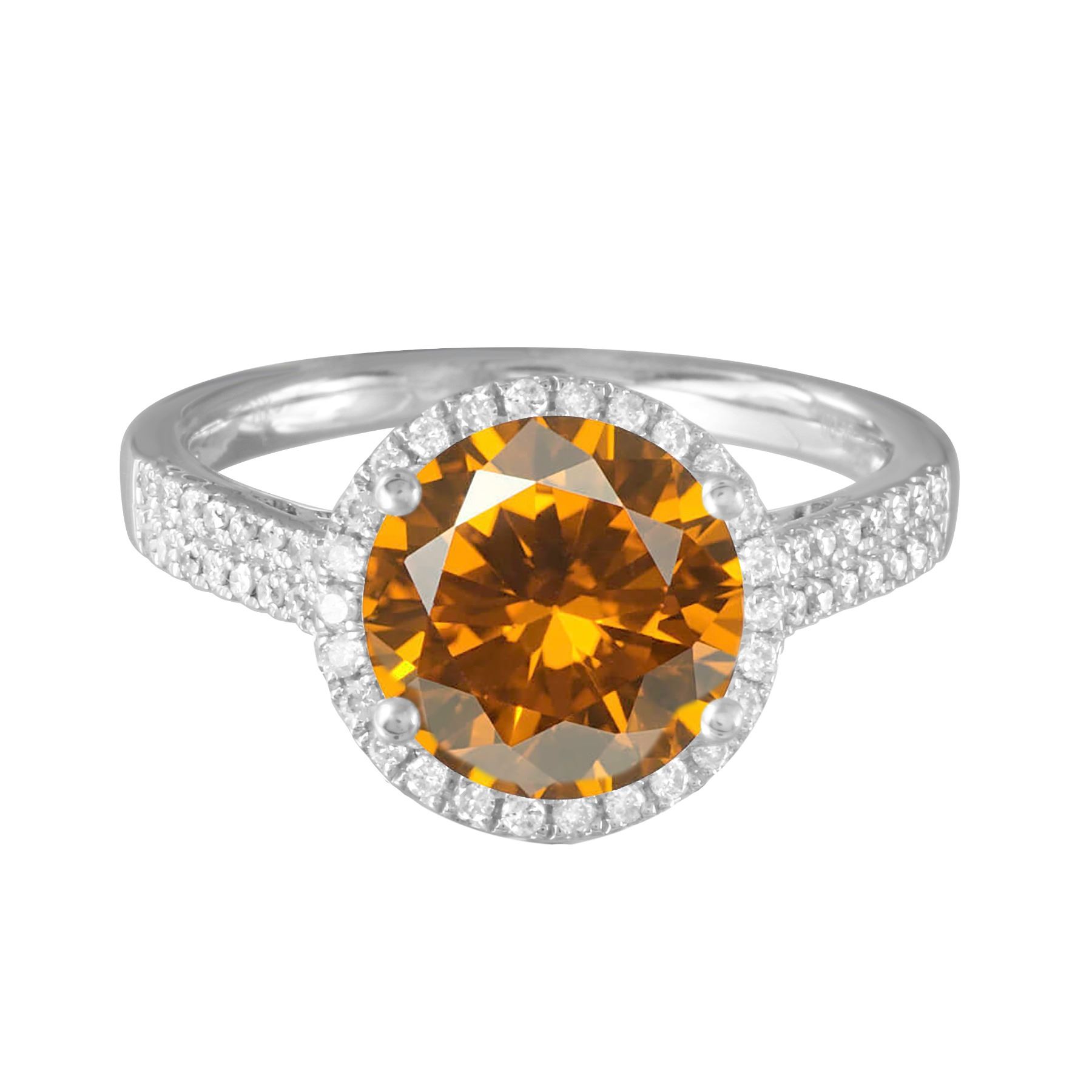 One 14KT White Gold 8.51ct Citrine and Diamond Ring. (1) Citrine stone with a total weight of 8.51cts. (68) Diamonds with a total weight of 0.42cts with a color of H-I and a clarity of SI-2. Total weight of this ring is 5.26 grams. Ring size is 6.5.