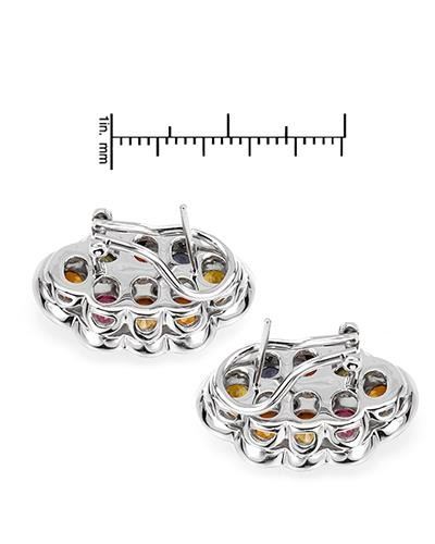 14KT White Gold 8.92ctw Multi Color Sapphire and Diamond Earrings. (16) Multi color sapphires with a total weight of 8.92cts. (96) Round Diamonds with a total weight of 0.81cts with a color of I and clarity of I-1. Measuring 24mm x 16.5mm. Total weight of these earrings are 12.5 grams.