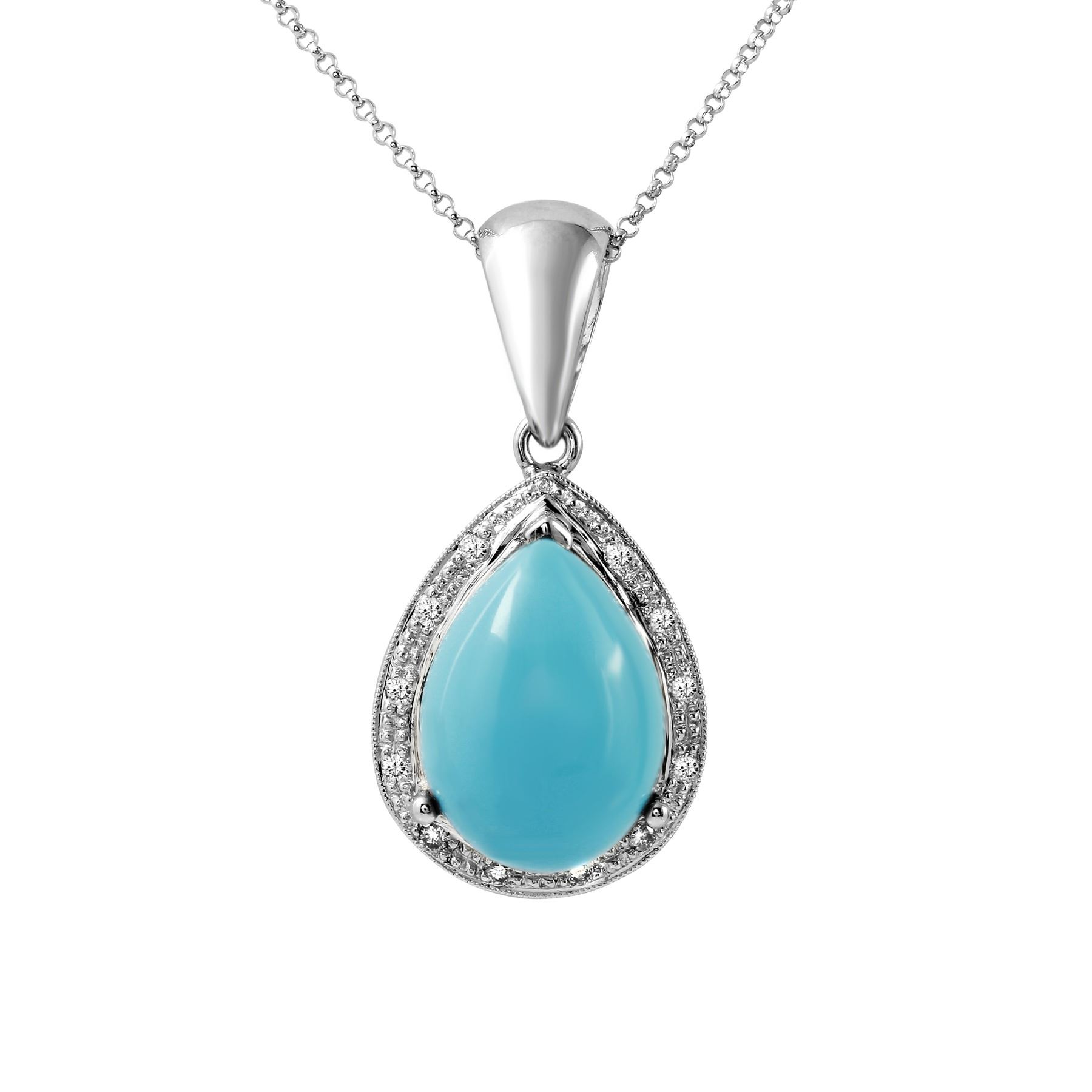 14KT White Gold 9.08ct Turquoise and Diamond Pendant with Chain