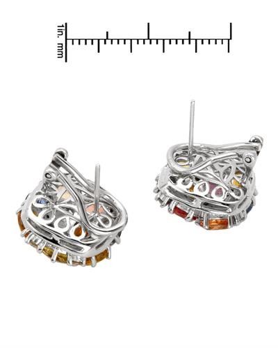 14KT White Gold 9.10ctw Multi Color Sapphire and Diamond Earrings. (20) Multi color sapphires with a total weight of 9.10cts. (12) Round Diamonds with a total weight of 0.33cts with a color of I and clarity of I-1. Total weight of these earrings are 8.59 grams.