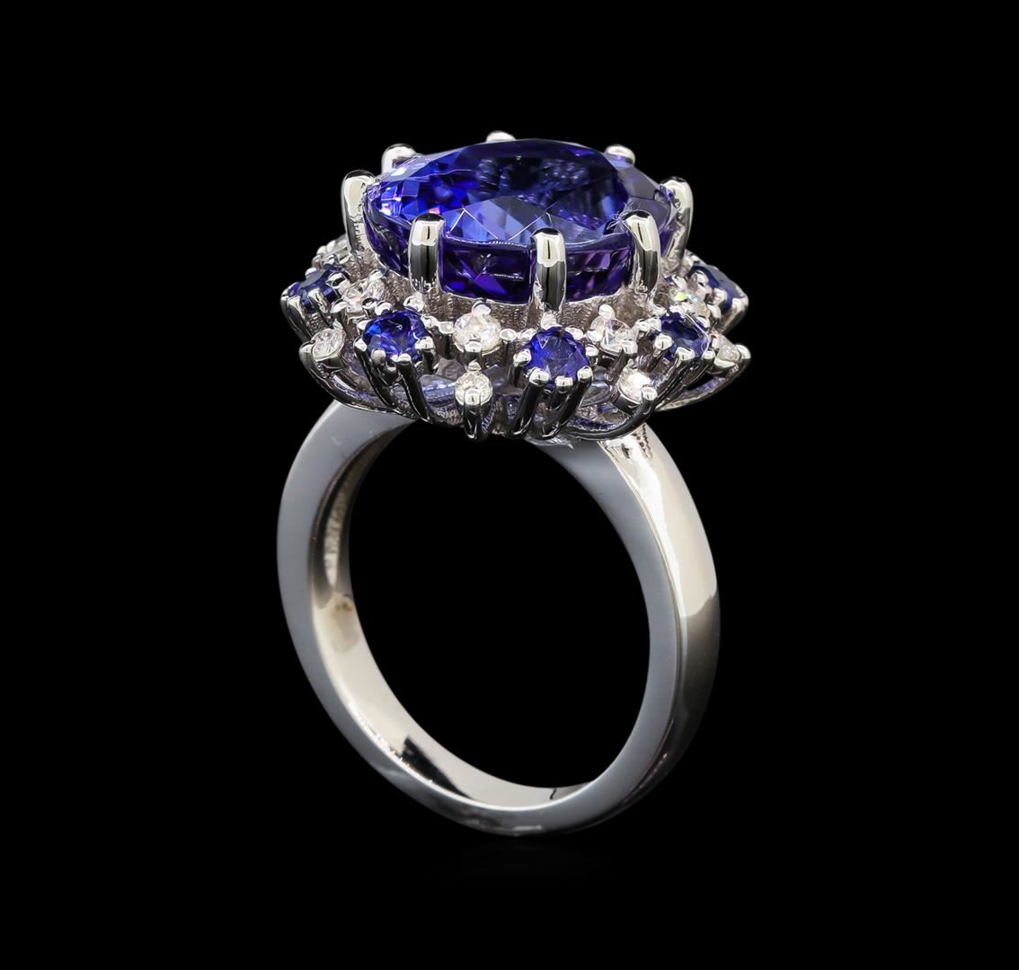 14KT White Gold 9.22 ctw Tanzanite, Sapphire and Diamond Ring