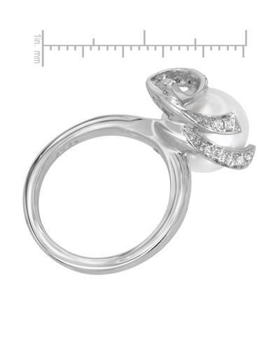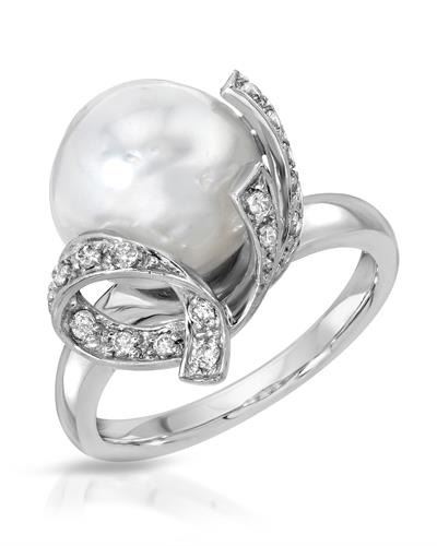 One 14KT White Gold 9.41ct Pearl and Diamond Ring. (1) Pearl with a total weight of 9.41cts. (16) round Diamonds with a total weight of 0.21cts with a color of I and clarity of I-1. Total weight of this ring is 5.33 grams.