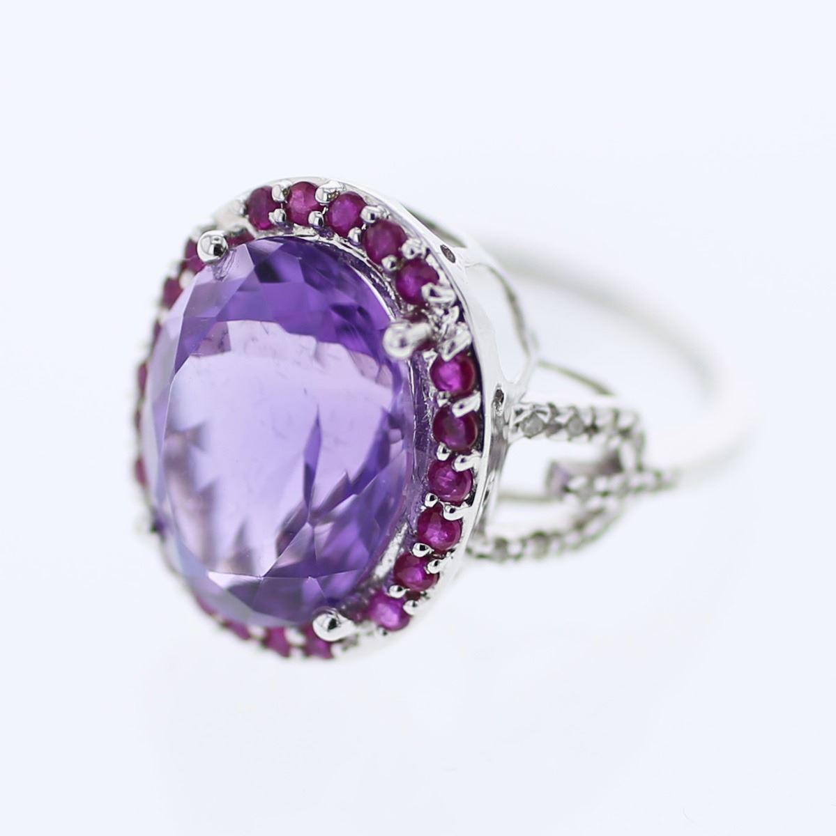 14KT White Gold 9.87ctw Amethyst, Ruby and Diamond Ring