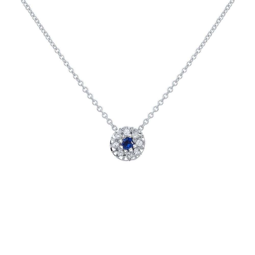 14KT White Gold Blue Sapphire and Diamond Pendant with Chain