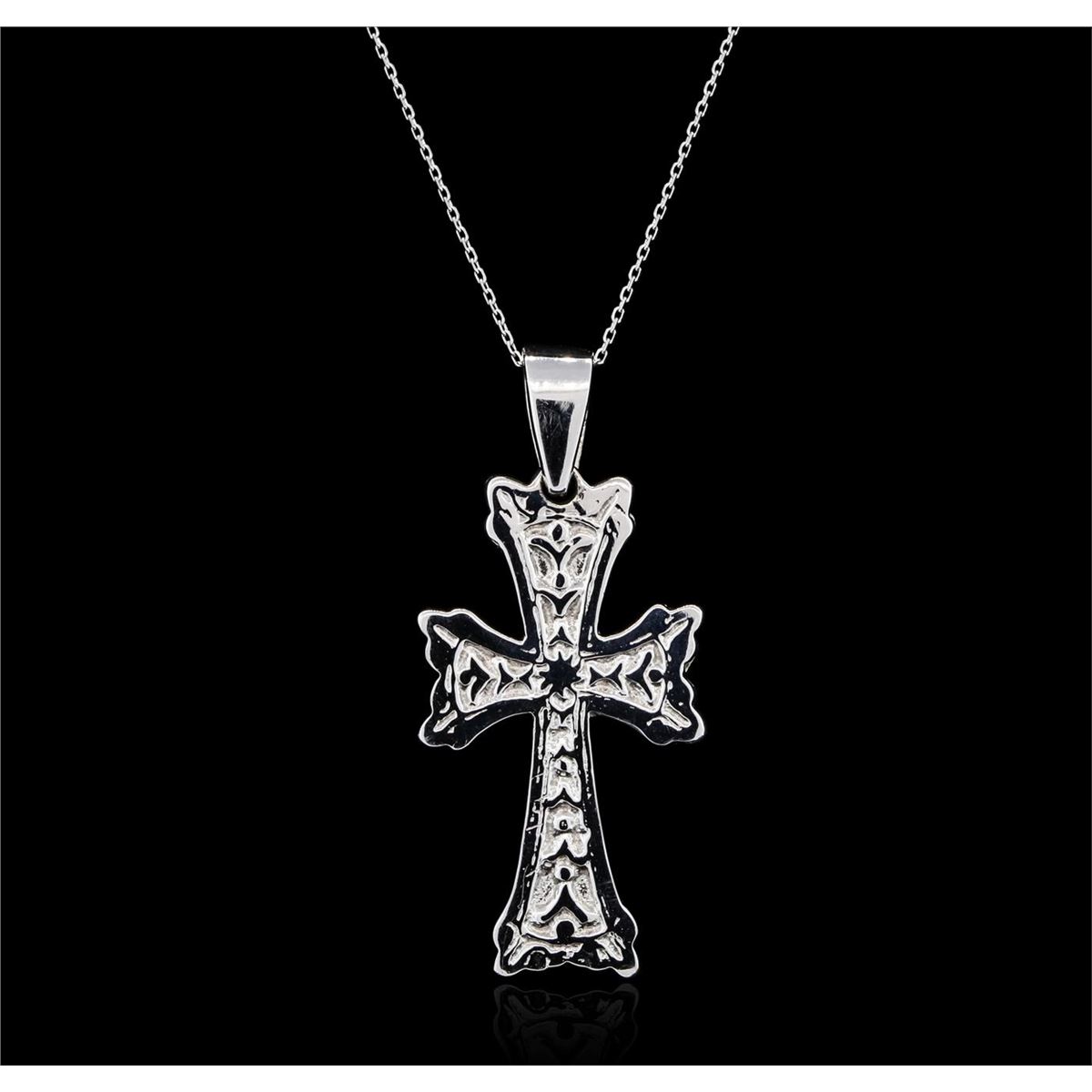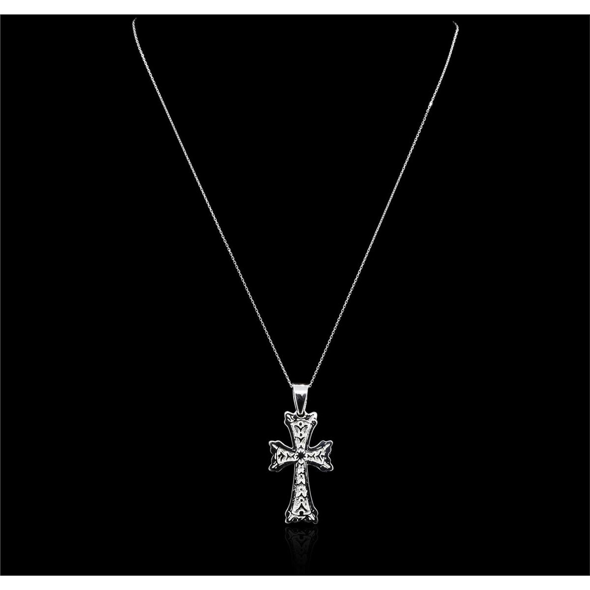 One cross pendant with chain featuring: 14KT white gold weighing 13.40 grams.
