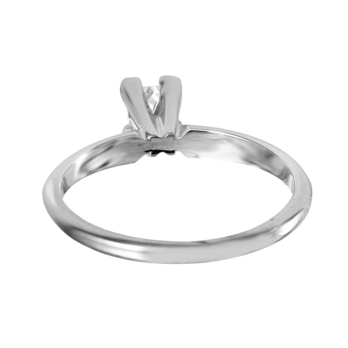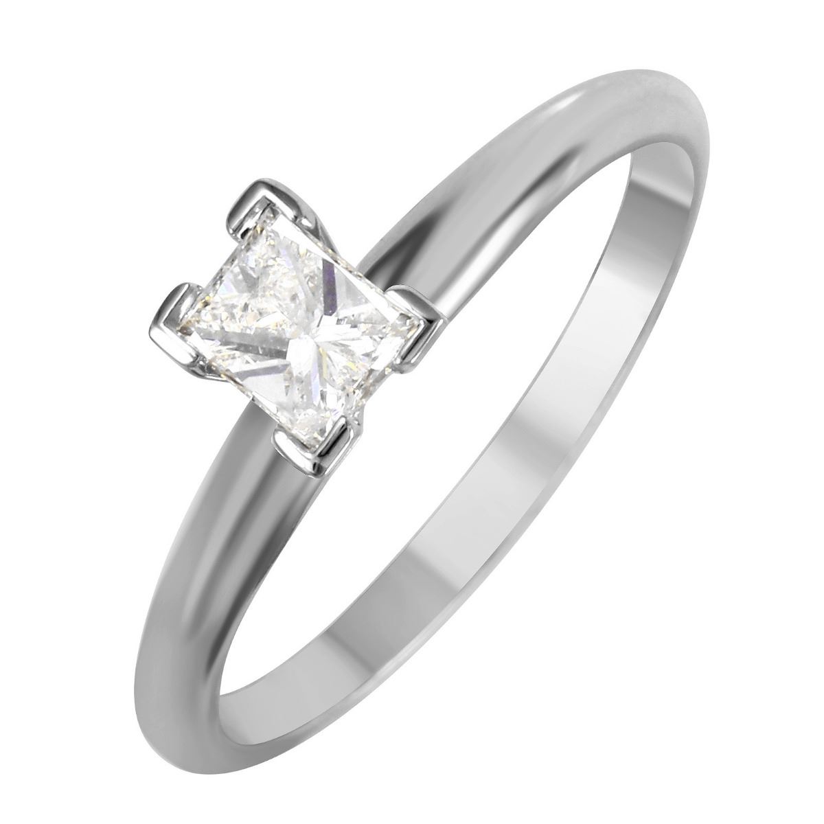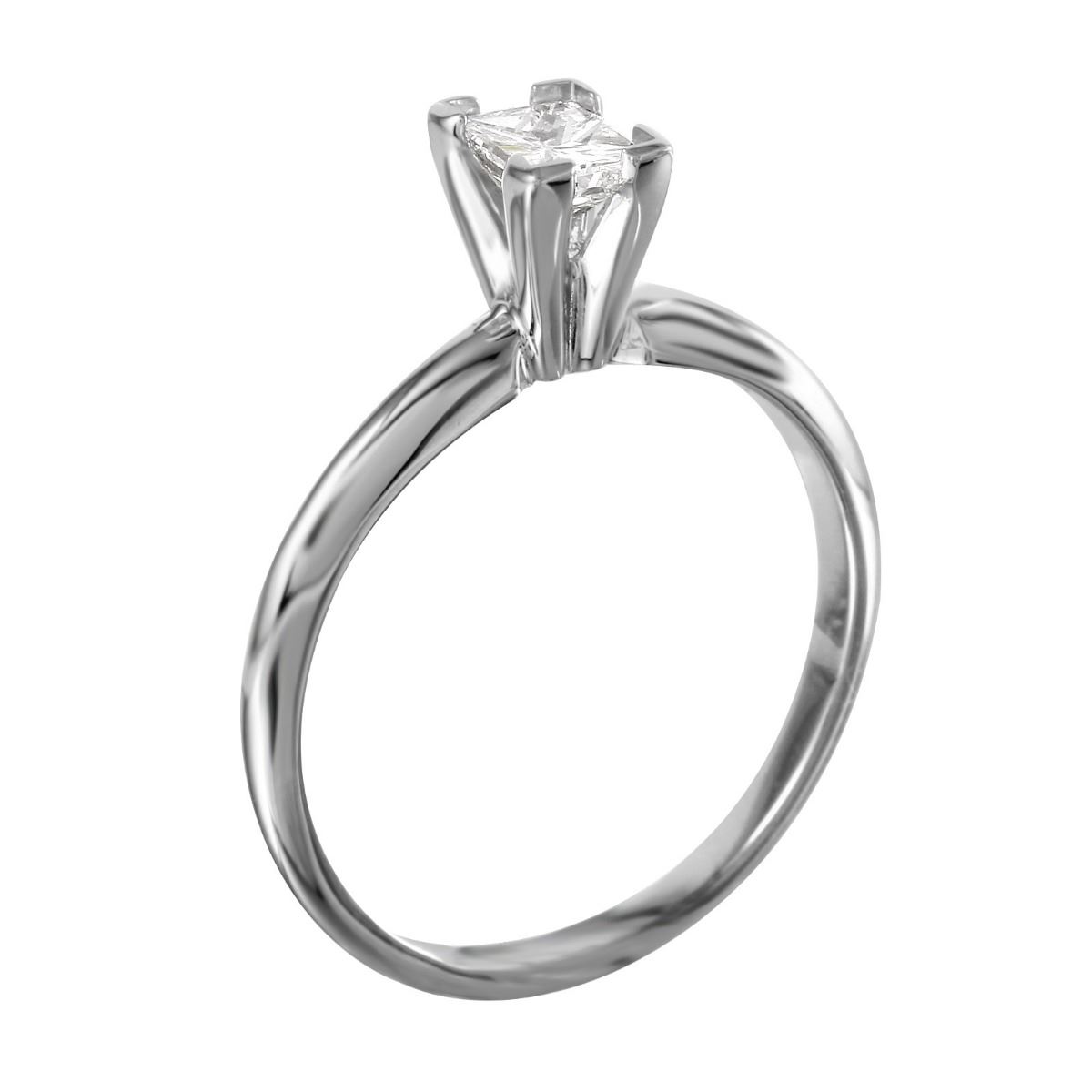 One princess cut diamond is prong set in the center of this brightly polished 14KT white gold solitaire engagement ring, created with a slim band.SpecificationsJewelry InformationCategory: RingCategory Style: SolitaireNew/Used: Pre-OwnedGender: FemaleRing Size: 6.5Metal: 14KT White GoldTotal Weight: 2.44 GramsTotal Diamond Weight: 0.41ctwTotal Weight all Stones: 0.41ctwInternal ID:1853Diamond 1Total Carat Weight: 0.41ctwClarity: SI3Color: HShape: SquareCut: Princess CutCount: 1DisclaimersThe descriptions listed should not be construed as an appraisal. The detail is provided as a guideline for color, clarity, weights and measurements to the best of our ability. We welcome inspections. WE SHIP WORLDWIDE!This item has a Reserve established by our consigner.