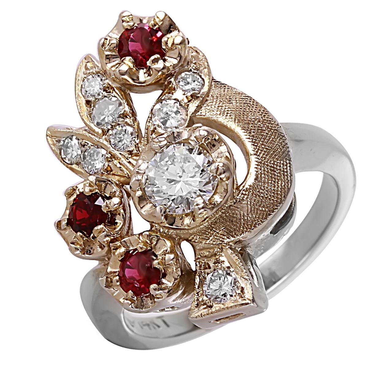 One electronically tested 14KT white gold ladies cast ruby and diamond ring with a bright polish finish. Identified with markings of "14K". Condition is very good. Containing: Three prong set round modified brilliant cut natural rubies, measuring 2.80 - 2.80 x 1.82 mm, approximate total weight of 0.33ct., clarity is heavily included, type II, medium, moderately strong, red color, cut is good. One prong set round brilliant cut diamond, measuring 4.50 - 4.50 x 2.70mm (depth est.) approximate weight of 0.33ct. Clarity: VS-2. Color: J. Eight prong set single cut diamonds, measuring 2.00 - 1.50 x 1.05mm (depth est.) approximate total weight of 8 Stones = 0.16ct. Clarity: VS-2. Color: I - J. Approximate Total Weight of Colored Stones 0.33ct. Approximate Total Weight of Diamonds 0.49ct. Total Weight of Ring 7.10gm. Ring Size 6.5. The descriptions listed should not be construed as an appraisal. The detail is provided as a guideline for color, clarity, weights and measurements to the best of our ability. We welcome inspections. WE SHIP WORLDWIDE!