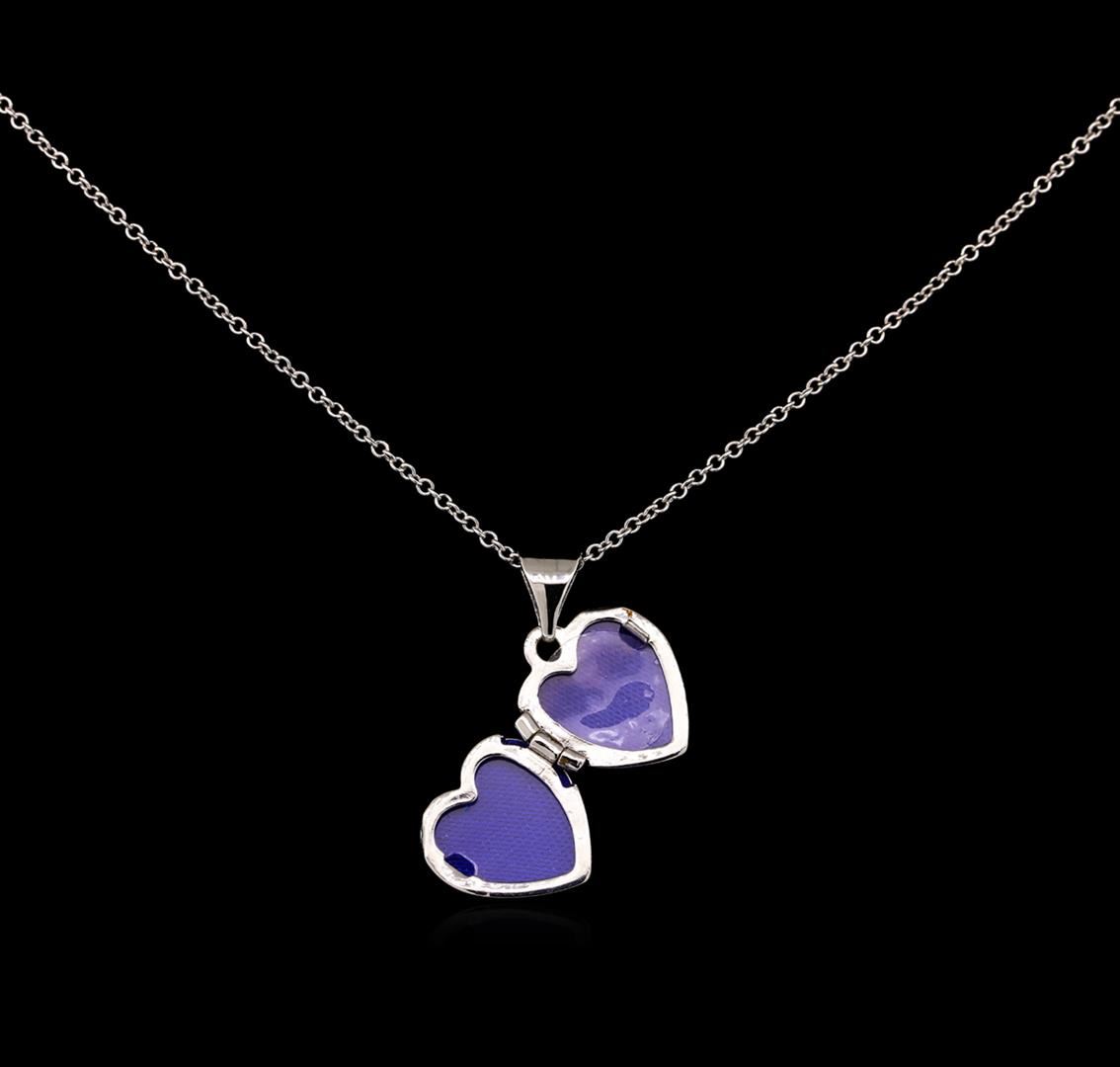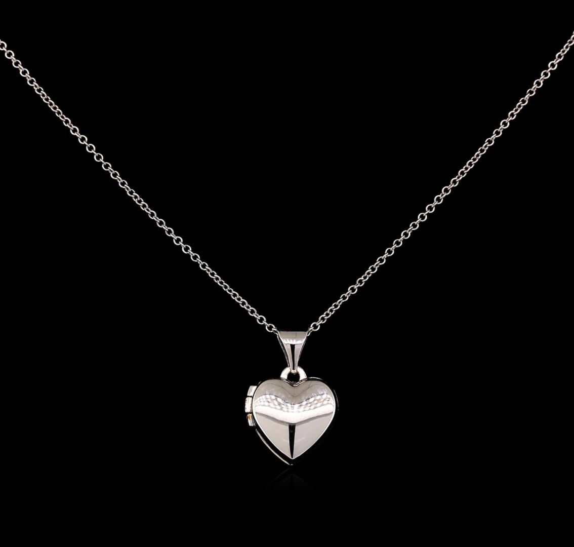 One heart shape locket pendant with chain featuring: 14KT white gold weighing 1.70 grams.
