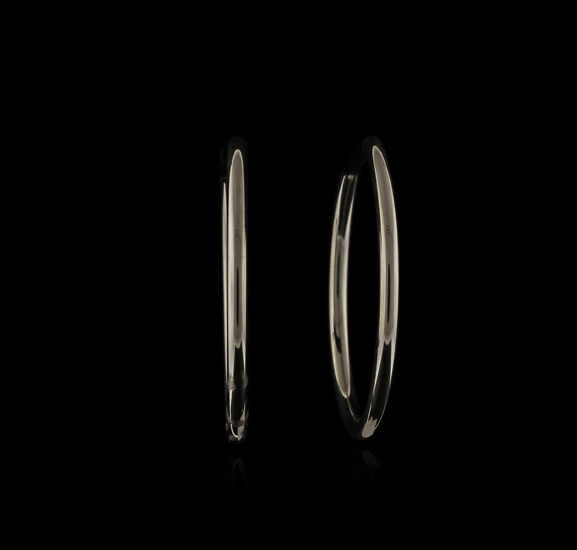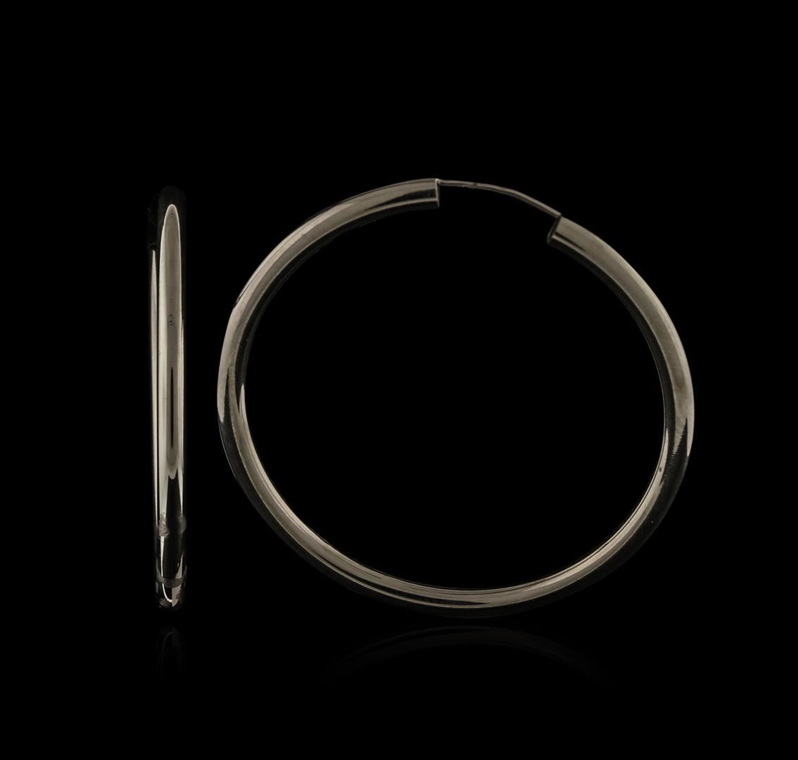 One pair of hoop earrings featuring: 14KT white gold weighing 3.92 grams.