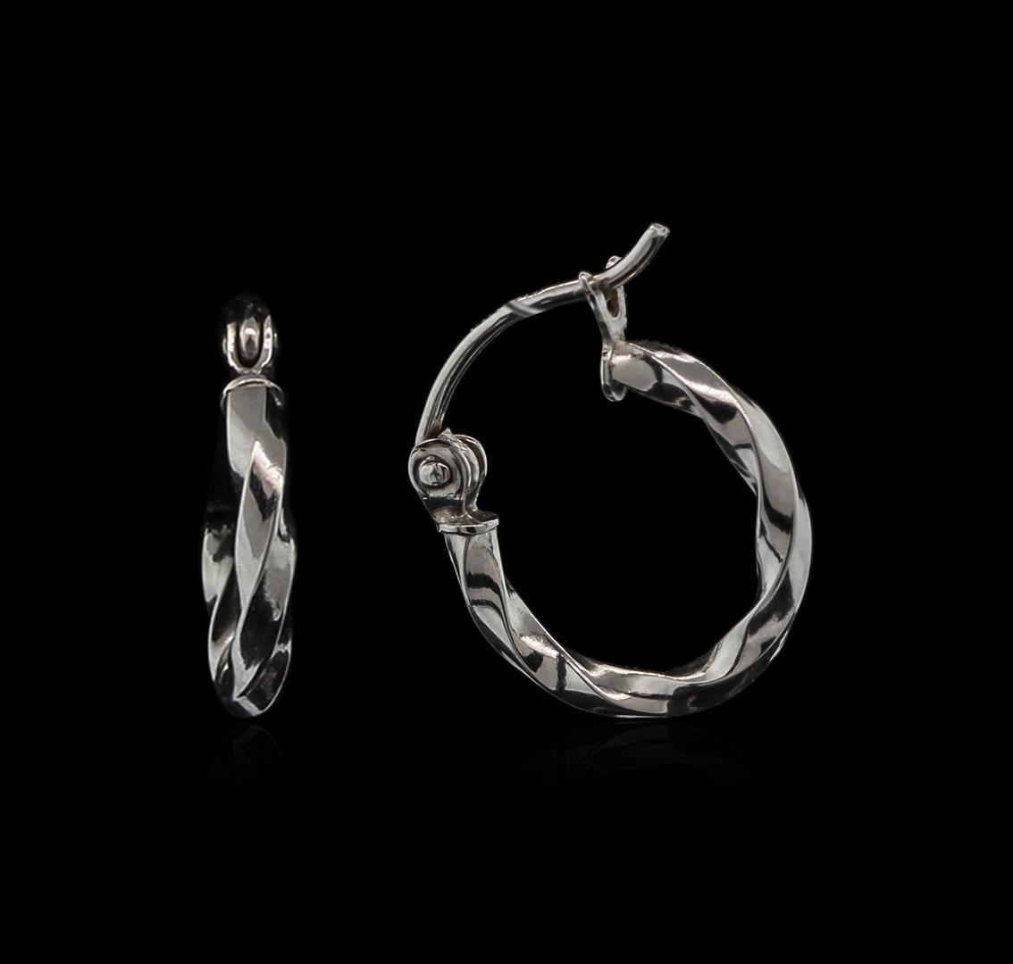One pair of hoop earrings featuring: 14KT white gold weighing 0.80 grams.