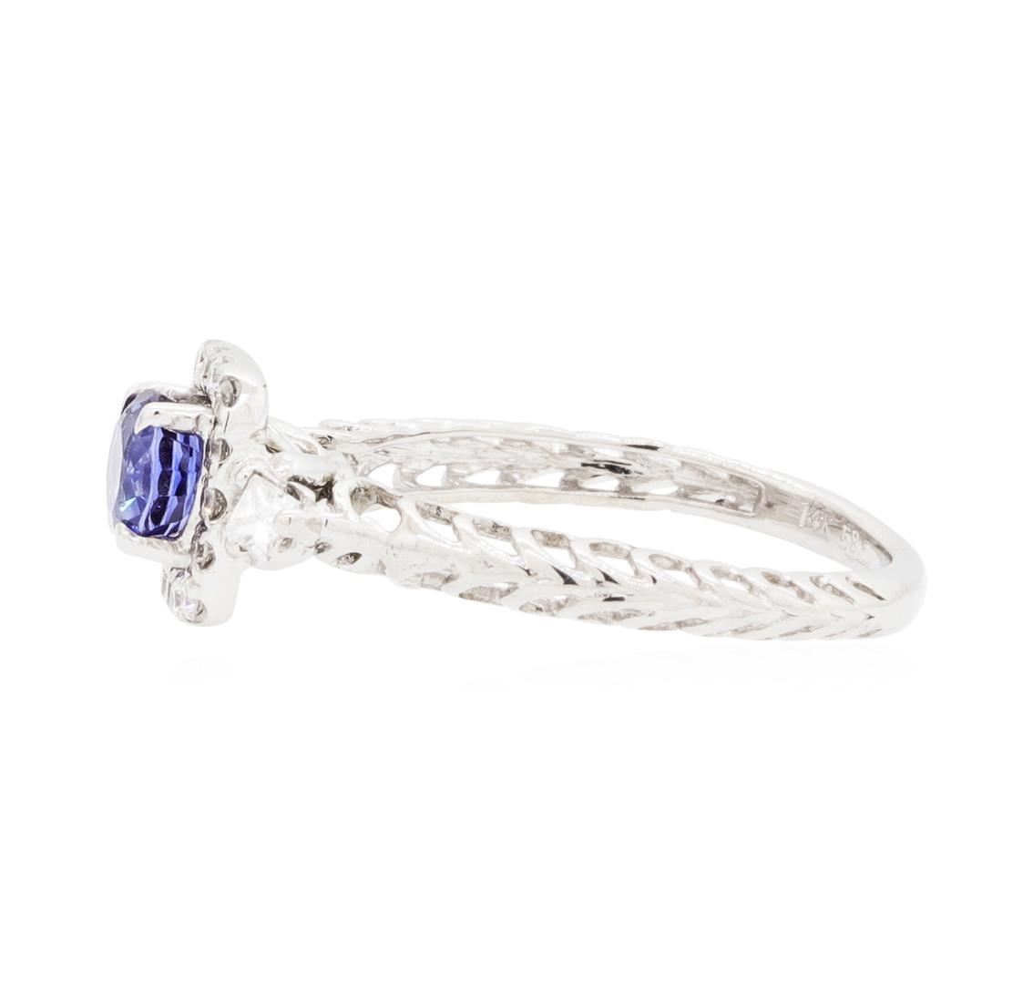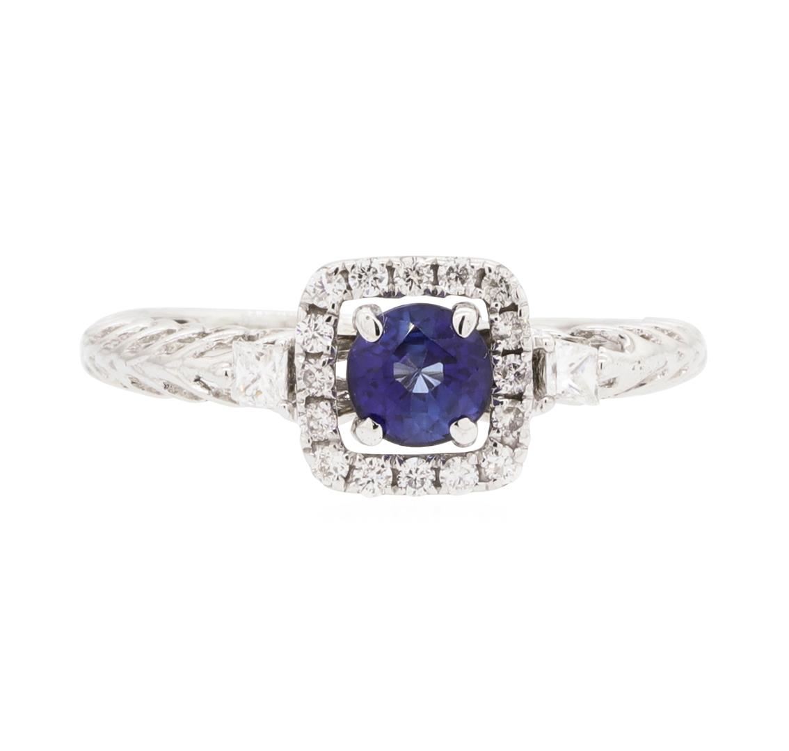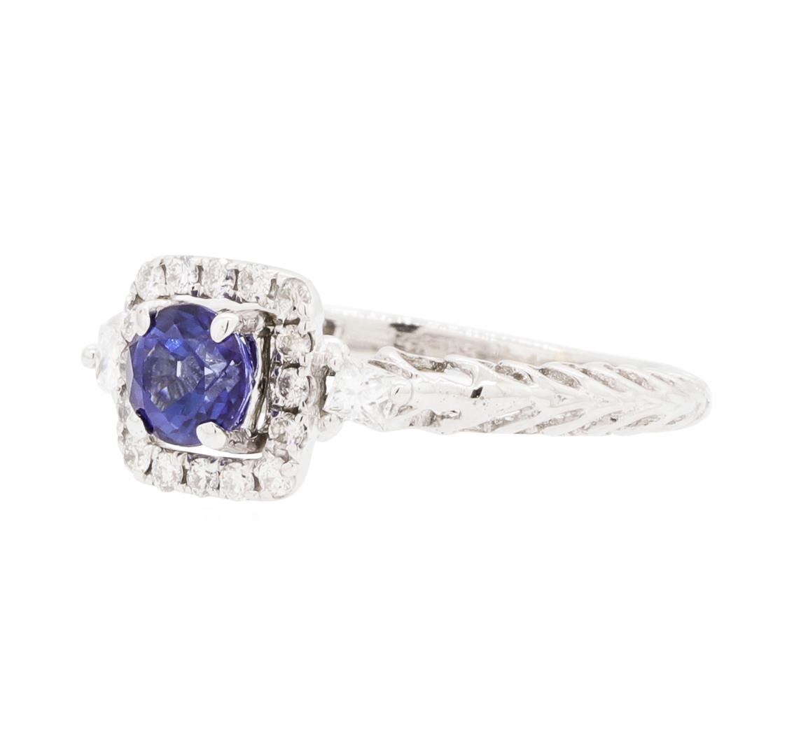 One lady's ring featuring: 14KT white gold weighing 2.3 grams containing one sapphire weighing 0.64ct and diamonds weighing 0.15ctw. The ring is a size 6.