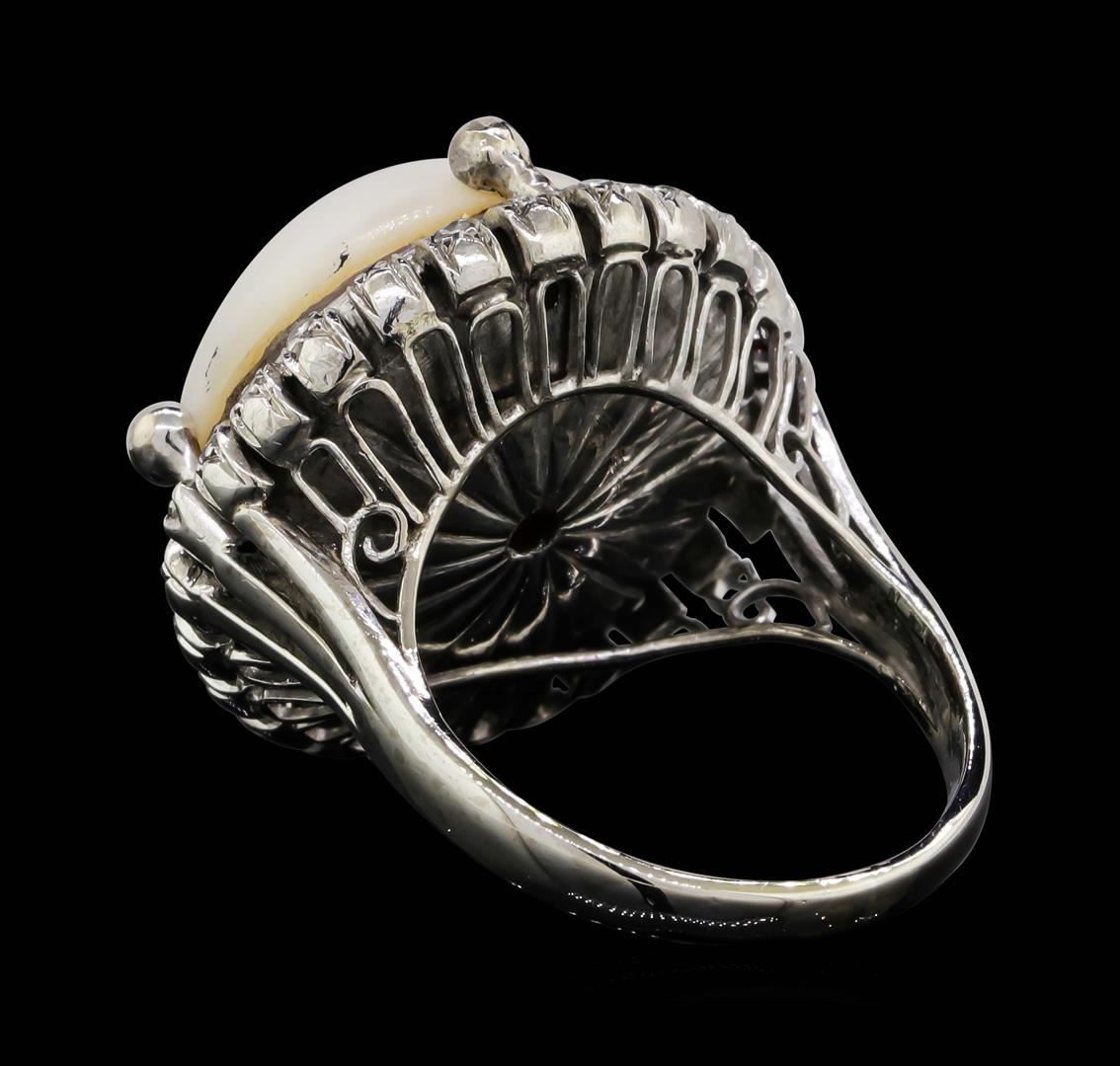 One Ladies ring featuring: 14KT white gold weighing 11.1 grams containing one mabe pearl and diamonds weighing 0.40ctw.