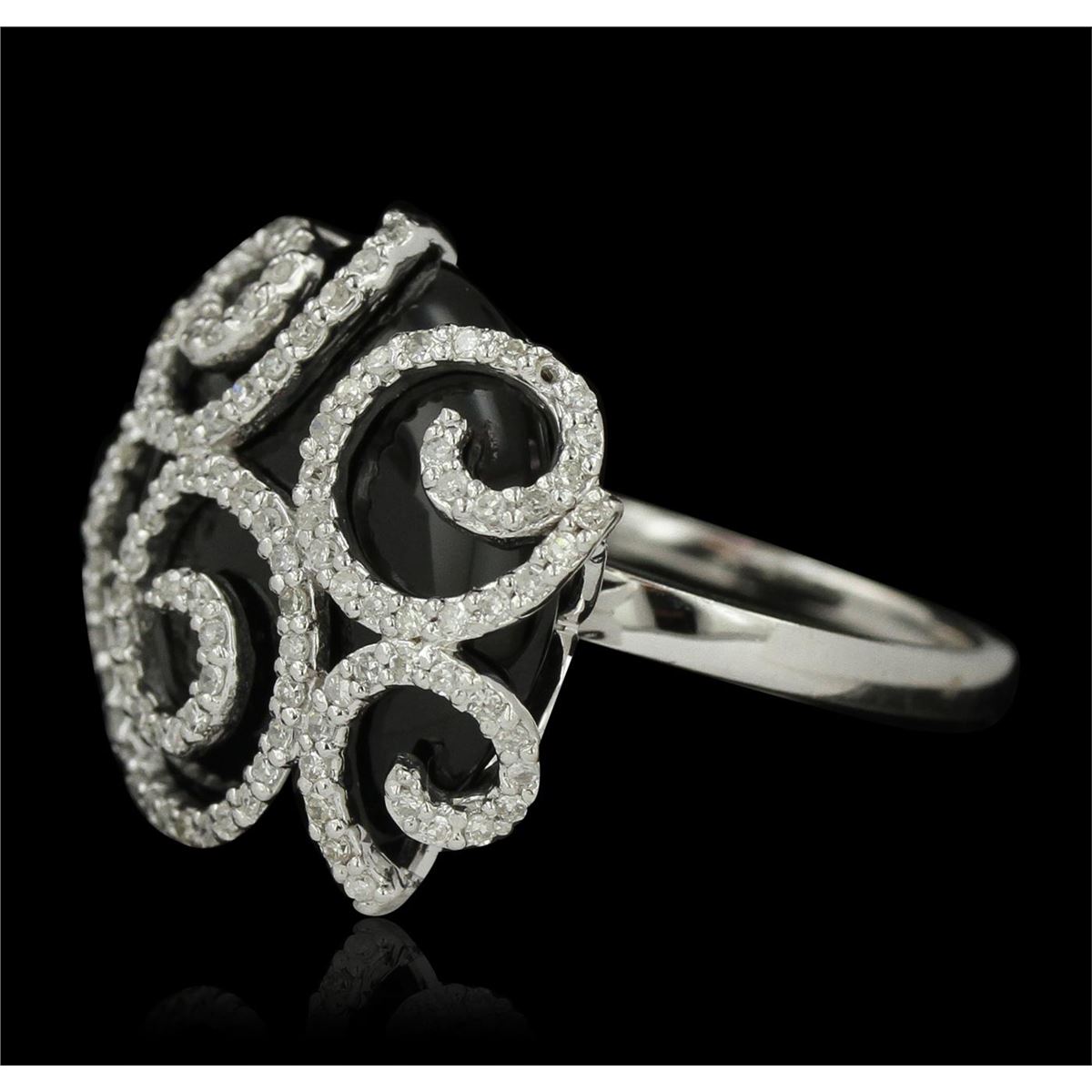 One ring featuring: 14KT White Gold with a total weight of 7.30 grams, Onyx, and diamonds with a total weight of 0.35ctw.