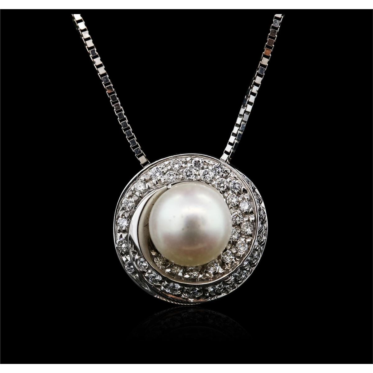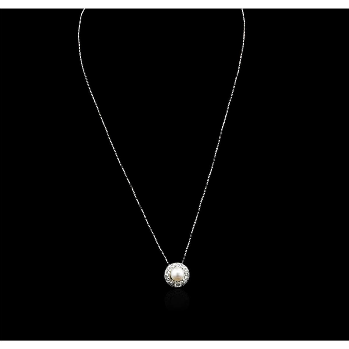 One pendant with chain featuring: 14KT white gold weighing 7.60 grams containing one pearl measuring approximately 8.00mm and diamonds with a total approximate weight of 1.25cts.