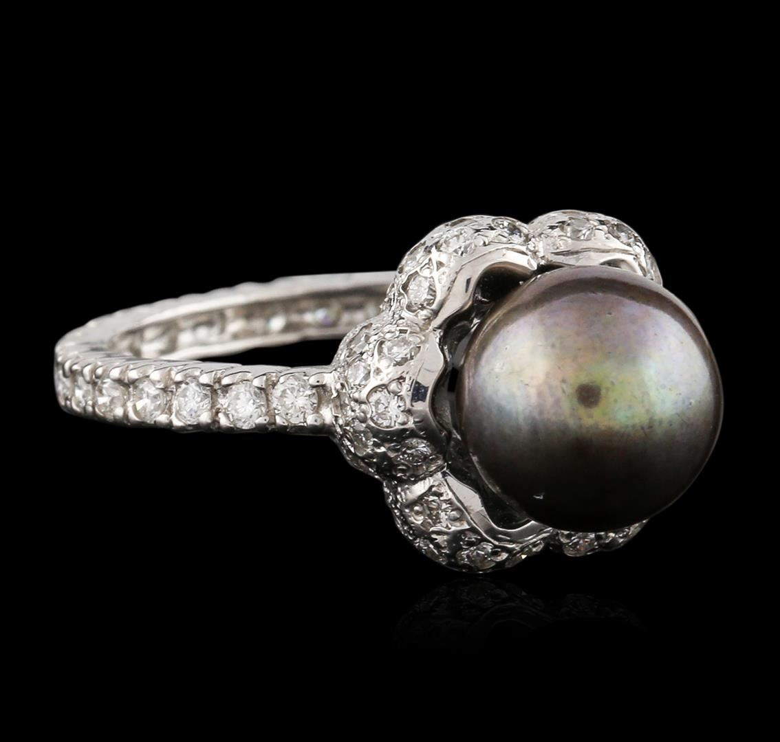One ring featuring: 14KT white gold weighing 4.30 grams containing one black pearl center and round diamonds with a total weight of 0.75ct.