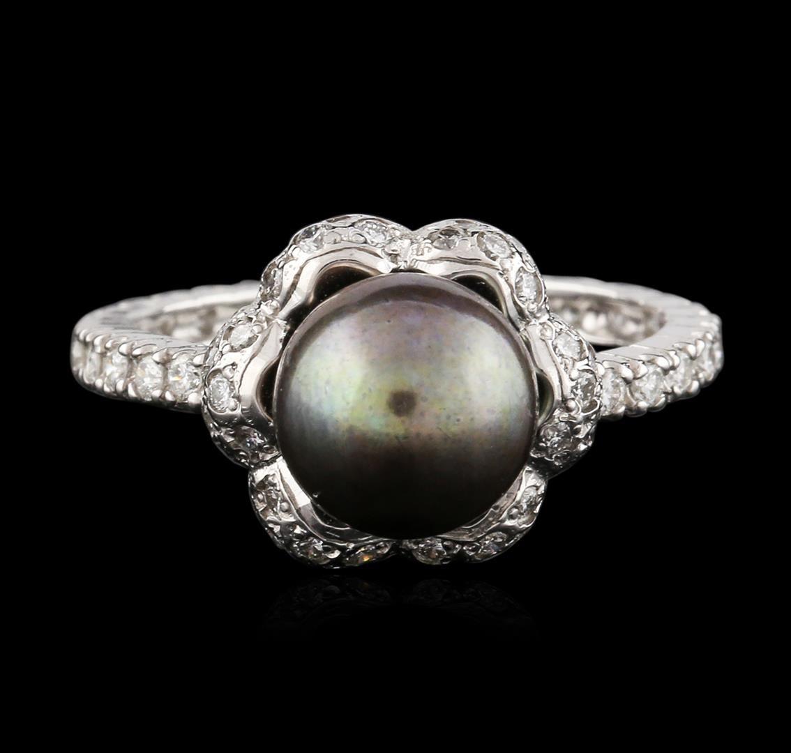 One ring featuring: 14KT white gold weighing 4.30 grams containing one black pearl center and round diamonds with a total weight of 0.75ct.