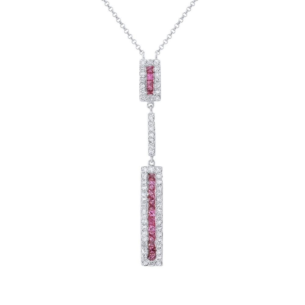 14KT White Gold Pink Sapphire and Diamond Pendant with Chain