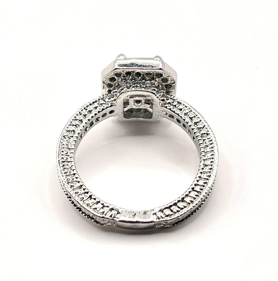 14 Kt White Gold Plated 2.35 Ct Lab Simulated Paraiba Tourmaline Ring. Impressive Rare 2.35 Ct Lab Simulated Paraiba Diamond Ring. This Mesmerizing Blue Green Center-Stone is an Eye Clean Emerald Cut Measuring approx. 6.7 x 8 mm. This spectacular High End Centerstone is Mounted in Tri-Layered 14 Kt White Gold over Solid .925 Sterling Silver with to give the ring its high polish and shine. It also is complimented by a single halo of brilliant round cut faceted accent stones. The ring is a size 7.5 and the total gram weight is 5 grams. This Ring Is Absolutely Gorgeous!!!