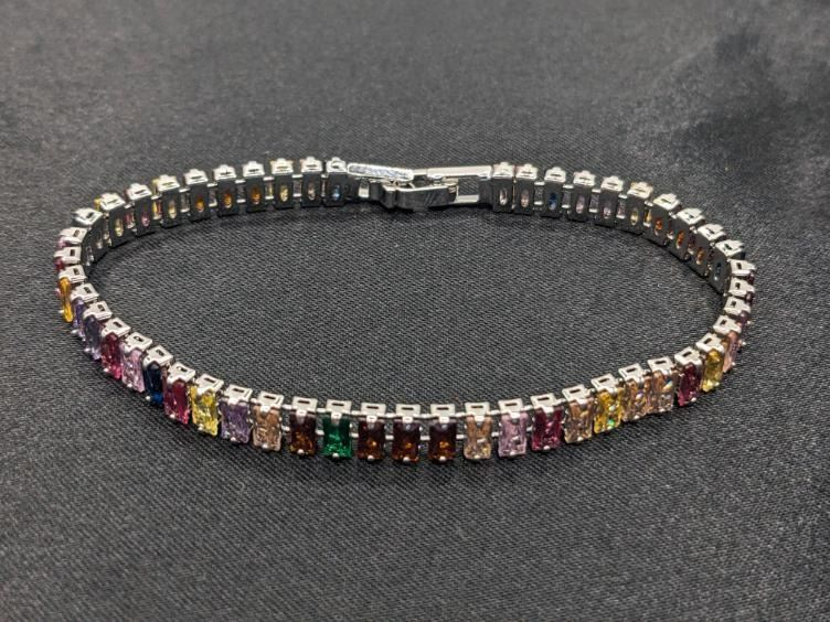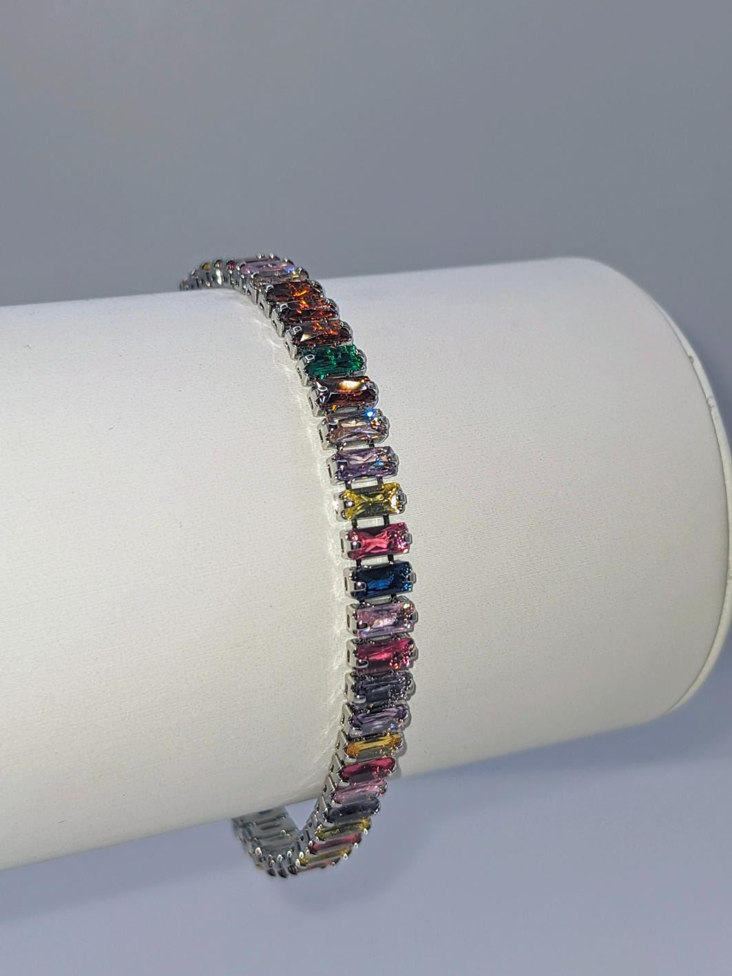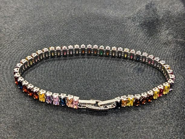 14KT White Gold Plated Mixed Color Simulated Sapphire Bracelet