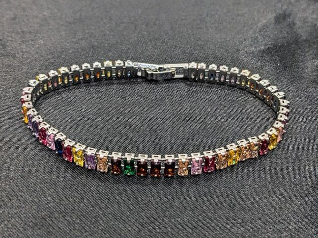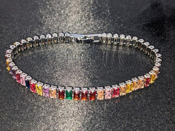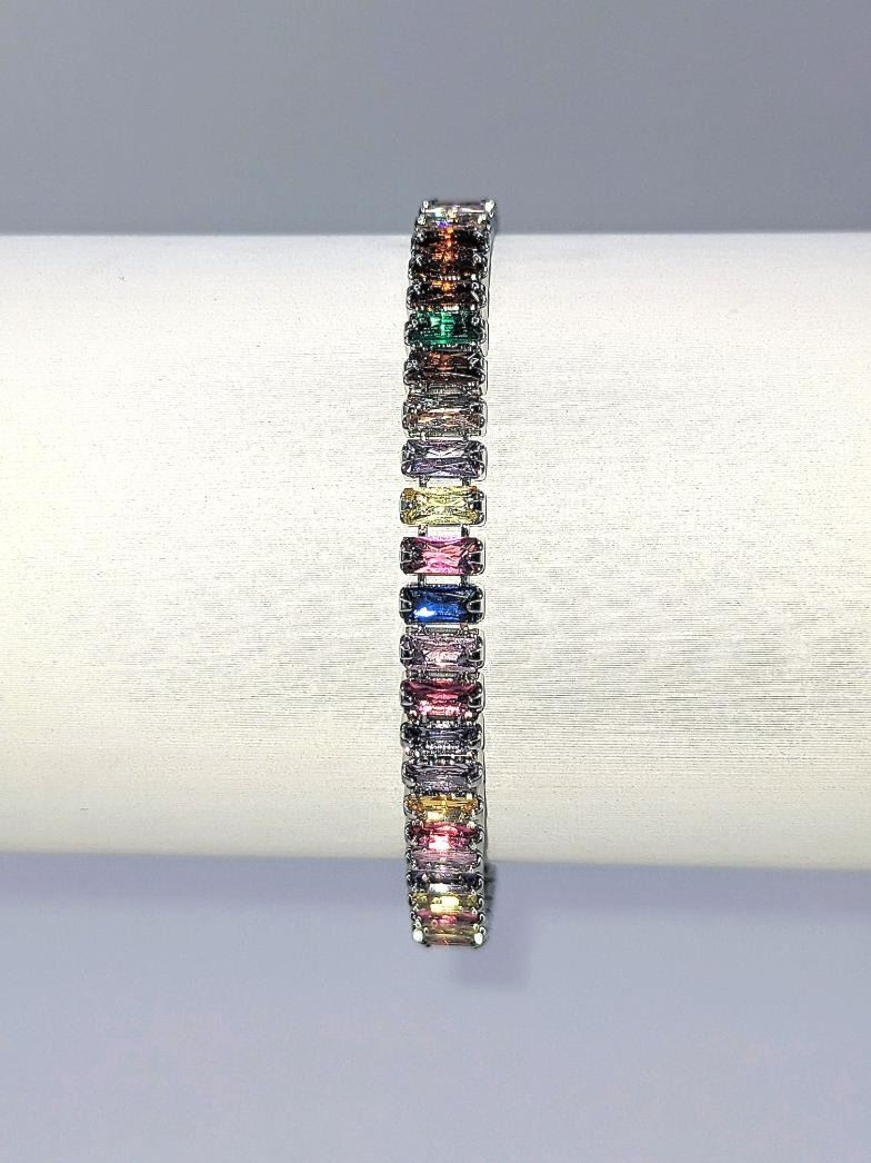 14KT White Gold Plated Mixed Color Simulated Sapphire Bracelet