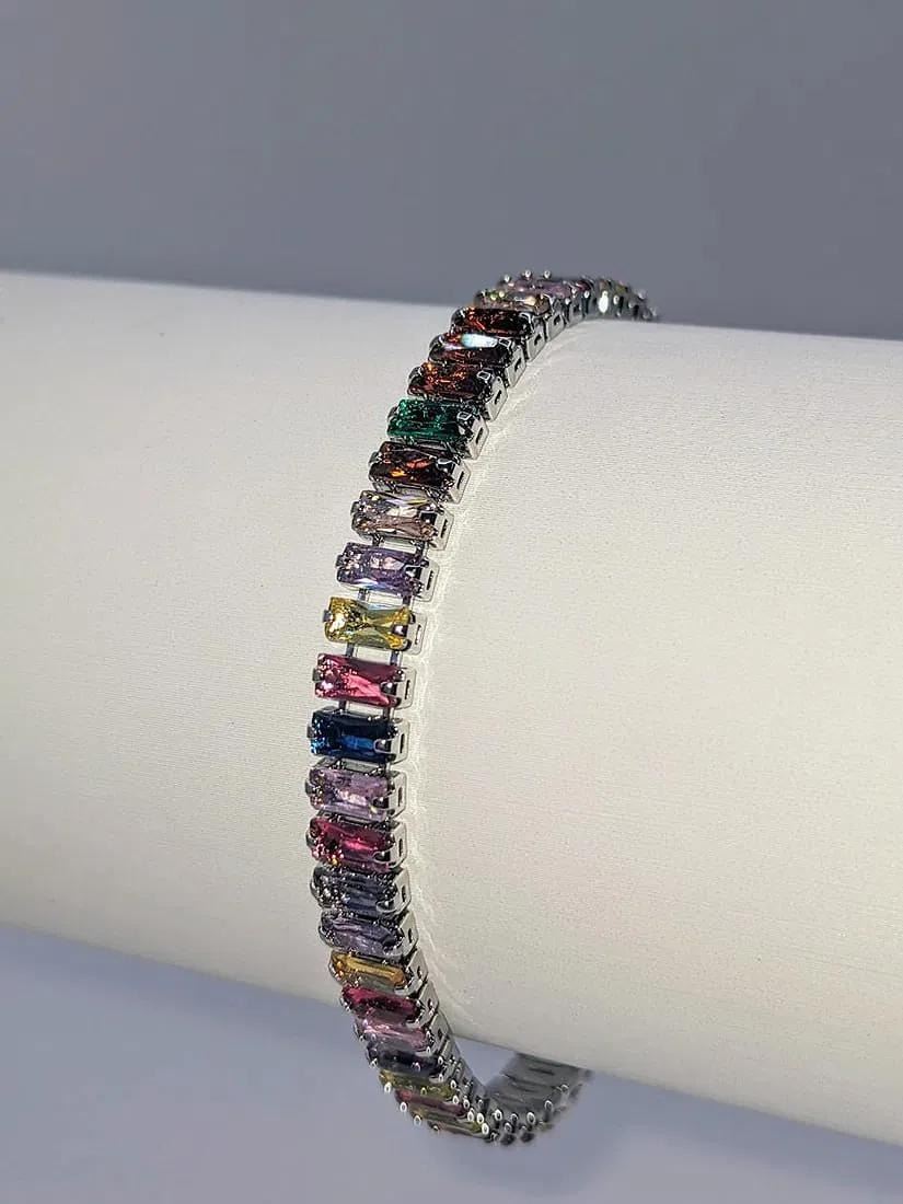 14KT White Gold-Plated Mixed Color Simulated Sapphire Bracelet