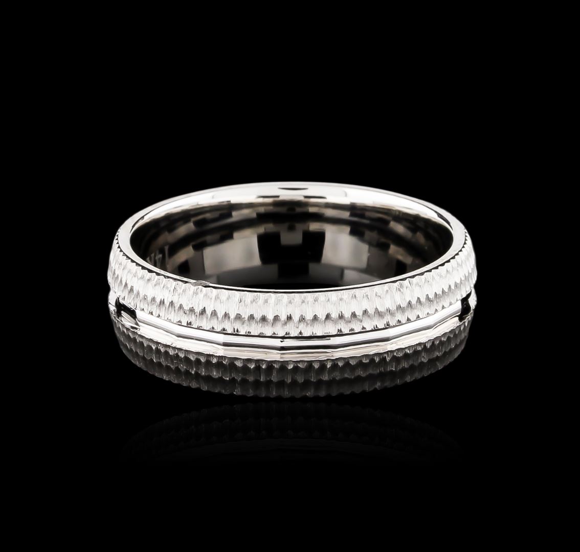 One gents ring featuring: 14KT white gold weighing 7.30 grams.