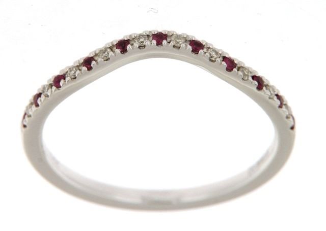One 14KT White Gold Ruby and Diamond Ring. (11) Rubies with a total weight of 0.06cts. (10) Diamonds with a total weight of 0.06cts with a color of I and clarity of SI-1 to SI-2. Total weight of this ring is 1.42 grams.