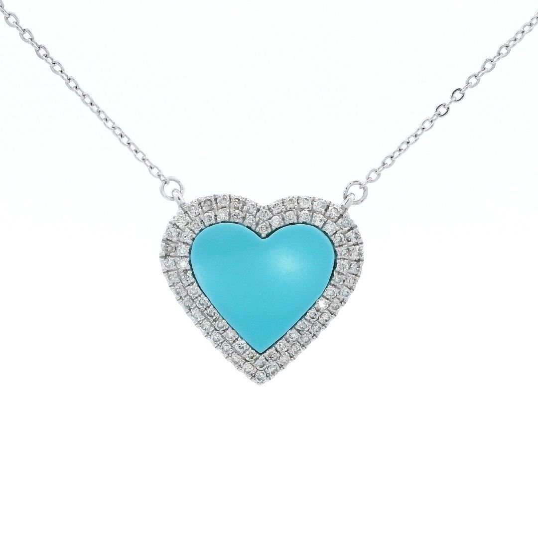 14KT White Gold Turquoise and Diamond Heart Pendant with Chain